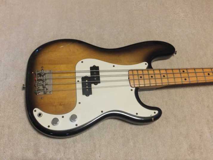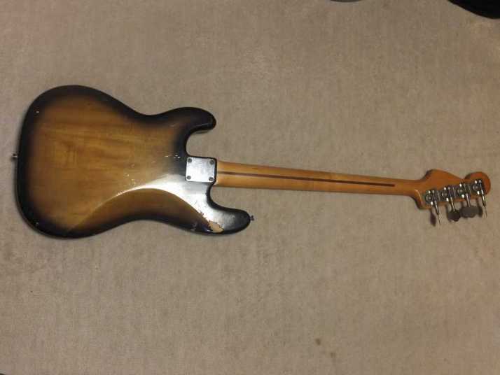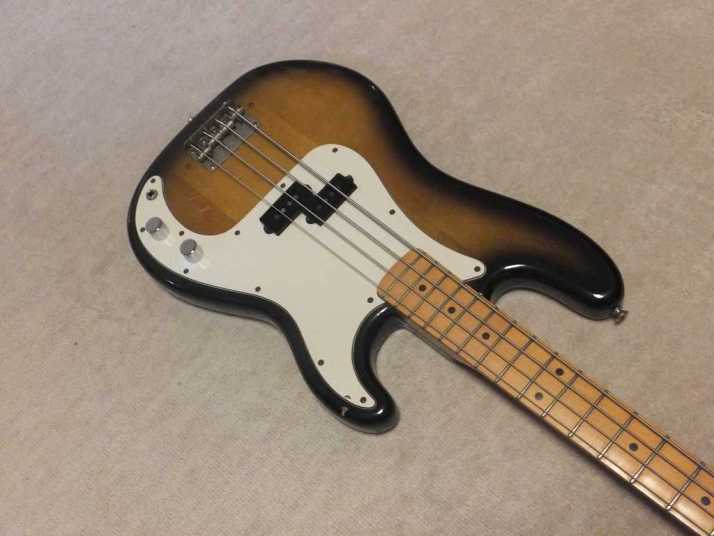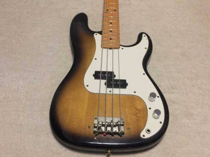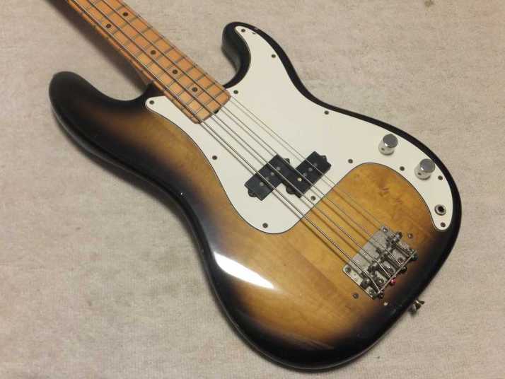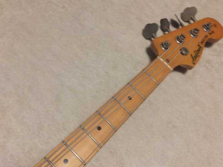 | Aria Pro-II Matsumoku '77 Made PB-500 This is 1977 Matsumoku made precision bass. Well, the out look of this bass is so-so. Looks like vintage bass, anyway. On the body back, we could see some scratches. The neck is straight and Frets (are bit worn) are fine. It is 1P neck (Head area 2P). The truss Rod is still adjustable. The nut size is 40.7 mm. The body should be Sen 3-4P with 4.15 Kg weight. I have changed only control Knobs. I think it is almost original condition. The tone is typical precision bass, good heavy bottom tone. This should be good bass when you start the JV collection. We are going to ship this bass with used Soft Carrying case. Well, enjoy JV bass ! |
