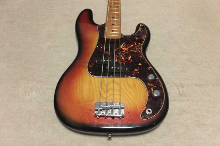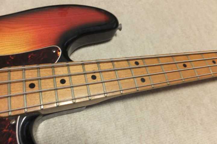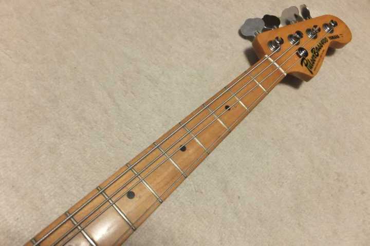 | YAMAHA Pulser Bass Precision Model early 80 Made Yamaha Pulser Bass made by Kasuga Gakki in 1980's. This is 400 model. The body material is SEN 2PLY (like pancake) 2-3P.. The neck is a bit up-bow. no twisting. I adjusted it by truss rod. Now I tighten it 80%. Well, if you prfer very low action bass, this is not good. But for normal playing, it is O.K. The frets are proper condition (a bit worn). The previous user wrote the scale in Japanese on finger board. We could see it a bit.The neck shape is like C as Precision bass. The Nut width is 41.0 mm The body weight is approx.. 4.58 Kg. The metal parts are not really rusted. Almost 40 years old bass, you could guess the condition. We are going to ship this bass with used Gig Bag. Please try JV Precision Bass! |