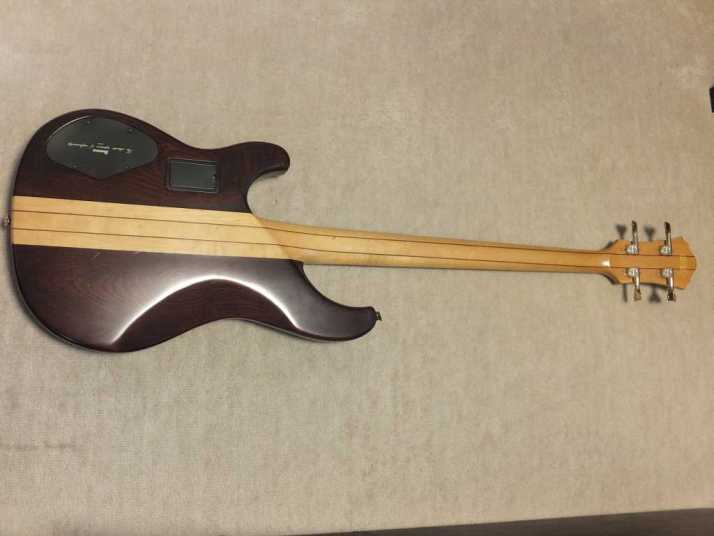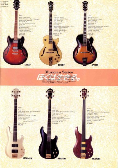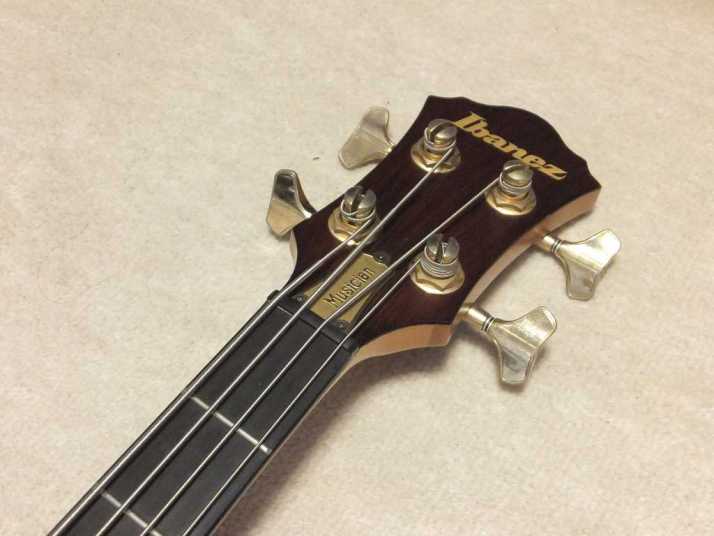 | IBANEZ MC924DS 1985 made It is getting hard to find out the good condition old Ibanes Bass even here. Well, IBANEZ was started for exporting business brand by Hoshino, made by Fujigen. Therefore, it is similar specification with Greco GO series tough neck type model. However, its design and impression is more high price instrument. I have handled several MC before. However, this is a one of good condition with original hard case. The hard case is a bit damaged but still can be used. I have attached original Ibanez catalog. You could see the specifications. The though neck offer you longer sustain and good bottom tone. I like it very much. If they are offering this specification bass again, I thick it should be like US$2500-3000 range now. So, this pricing is very reasonable, I think. The neck is straight and frets are proper condition. Body also hasn't got serious damaged. It is generally good condition. You could enjoy this old bass! |