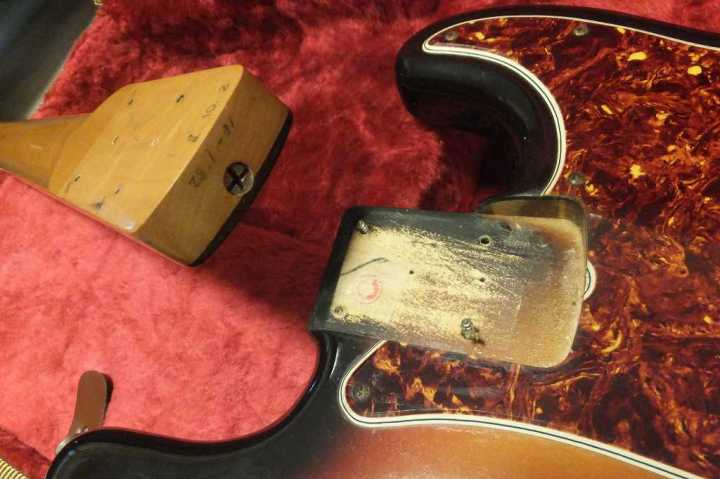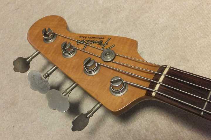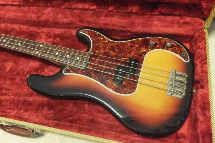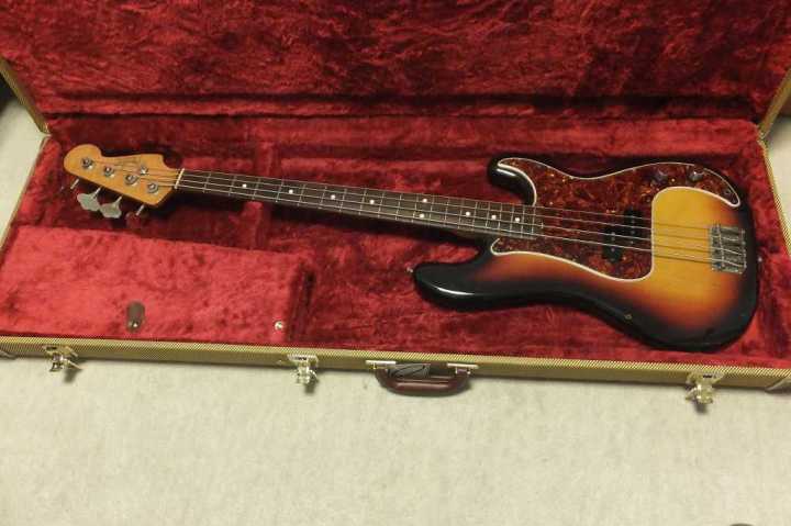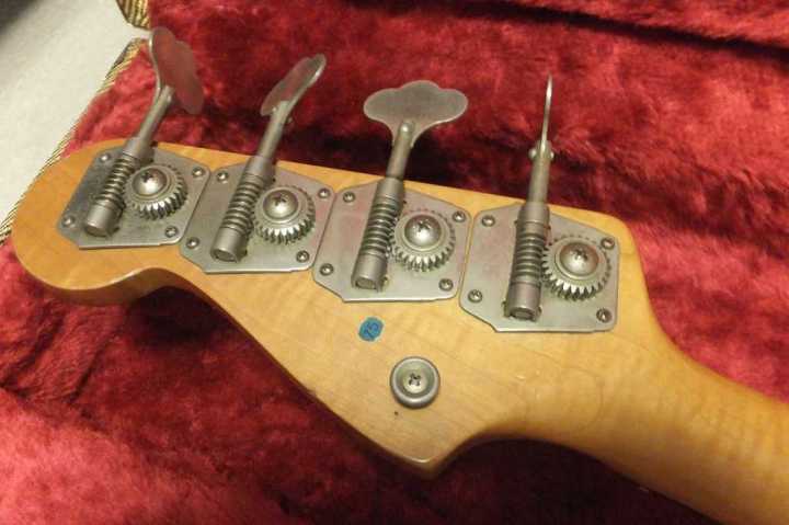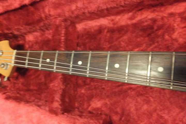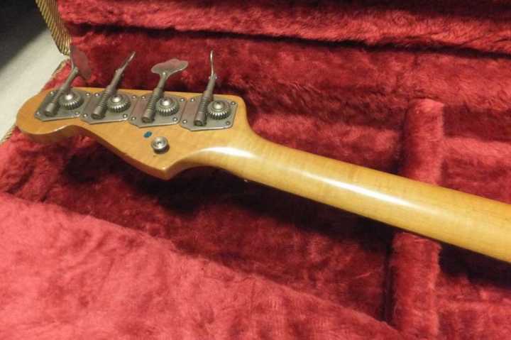 | Fender Japan PB62-70 Fujigen 1982 Made MIJ JV serial This is good condition JV serial Precision Bass. According to the Fender Japan Catalog, this model have Japanese Made PU type. The PU has the cloth wire type. Also, the catalg said PB62 3TS should be PB62-75. I'm not sure waht is correct. The wood, it looks like ash as catalog.The weight is 3.73Kg It is pretty light weight. The neck is maple 1P (Nut Width 42.6mm - 1982 date stamp. This neck has very good tiger flame. It is very good looks. Truss Rod is working but tighten maybe 60-70%. Currently, the neck is straight and good feel. The frets are proper condition. The body condition is good as this aged bass. There are scratches and dents. BUt not really bad looks, really vintage looking. This bass is Poly finished, not Nitro, anyway. The metal parts are proper condition.Tuner is reverse type. The bridge saddle is sporal type. It is very hard to find out good condition JV serial bass guitar. This is one of good one, anyway We are going to ship this bass with new tweed hard case. Well, enjoy real JV serial bass ! |