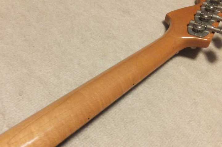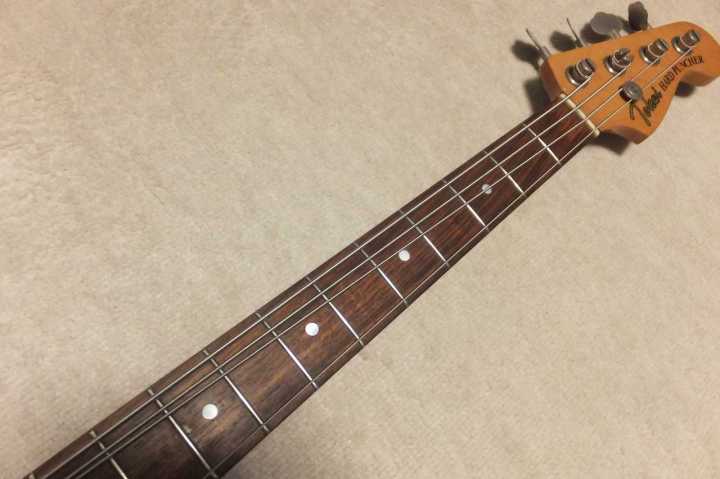 | Tokai Precision Bass Hard Puncher PB-40 This is a good condition Tokai 78-80 made precision bass model. It is over 30 years old bass. However, generally good condition. The neck is straight and no twisting. The truss rod is adjustable. The frets are proper condition (we have leveled well at our guitart shop). The neck shape is like C as Precision bass. The Nut width is approx. 42 mm The nut is probably changed to Brass by previus user. The Sen 3-4P body with 4.11Kg. I think it is standard weight as older Japanese made bass. The finger rest was installed below pick up as shown. We could see some scratches and dents on the body back. The metal parts are not really rusted. These look good. The sound, well, it is typical P bass sound. We are going to ship this bass with used (not Tokai original) Gig Bag. Please try JV Precision Bass! |