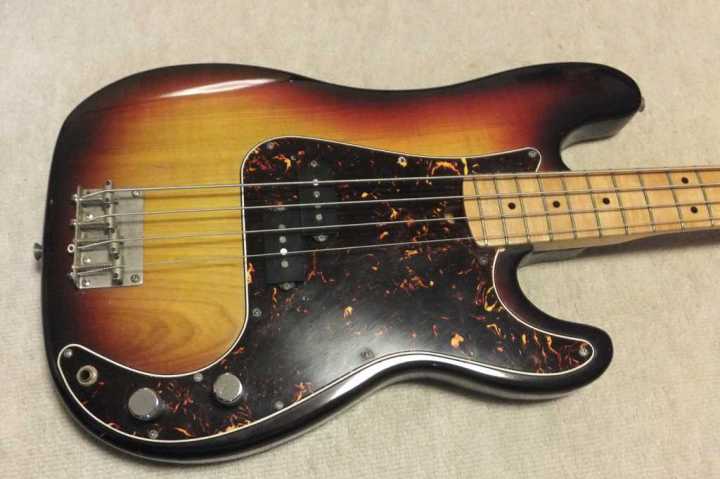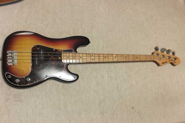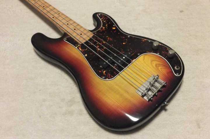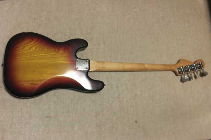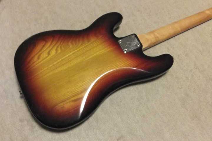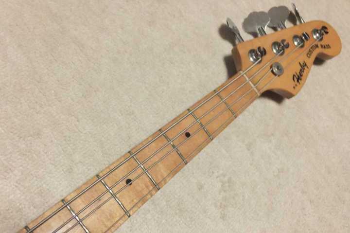 | R.K. Herby Custom Bass Precision Model Well, R.K. Herby is the collaboration products between Roland and Kasuga in mid. of 70's. I'm not sure the reason why. Anyway, this brand was made before their Guitar Synthesizer GR series. So, I feel a bit strange why Roland didn't make their synthesizer guitar with Kasuga. Probably, there was some political (Business) reason. I could not find out the catalog of R.K. Herby. However, I knew that they made the Strat, Les Paul, ES-335, TV and some bass replica. Their Les Paul was pretty good-looking, I remember. The body was made by Kasuga. The electric components were developed by Roland. So, the PU should be different designed from Fender type. When I got this bass, the pick up was replaced with unknown brand and it was broken down. I have changed the PU to Gotoh Brand new, the components was changed to new one completely. This bass became really good tone. I have R.K. Herby Jazz bass with original PU. However, I like this PB tone is better. Of course, outlook is much better, almost mint. condition. The body is sen 2PLY and 3-4P body just like Yamaha Pulsar bass. It is 4.427g. The neck is a bit like JB shape. The nut width is 38.9mm. The frets are a bit worn, proper condition. Well, this bass is the history teller. We will ship this bass with gigbag. Enjoy real JV bass! |