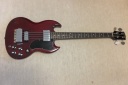 | Fernandes REB-70 1992? Made SG bass This is not really vintage bass. It is probably over 20 years old, Well, it is pretty young bass within my collection. This bass is pretty good body condition.On the back, we could see the scratch. Maybe by buckle. We could see the rust on the tuning key knobs and bridge area. The body condition is good as 20 years old bass. Moho body (Maybe 3P) and Maho neck (looks like 1P - Maybe 3P at the head). It is 3.2Kg weight. Well, the nut width is 39 mm with short scale neck. It is very easy for playing. Maybe from the Maho body, I felt the light tone compare with Fender style bass. Well, just like Jack Bruce? It depending on the Amplifier, anyway. We are going to ship this bass with used Gigbag (not original). Enjoy Japanese made Bass! |