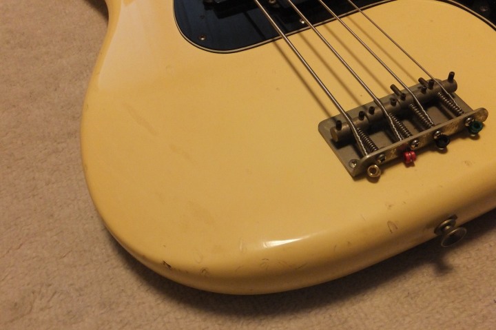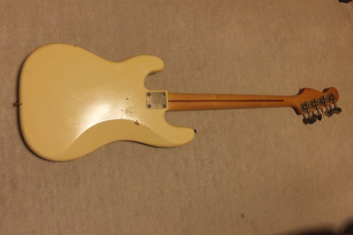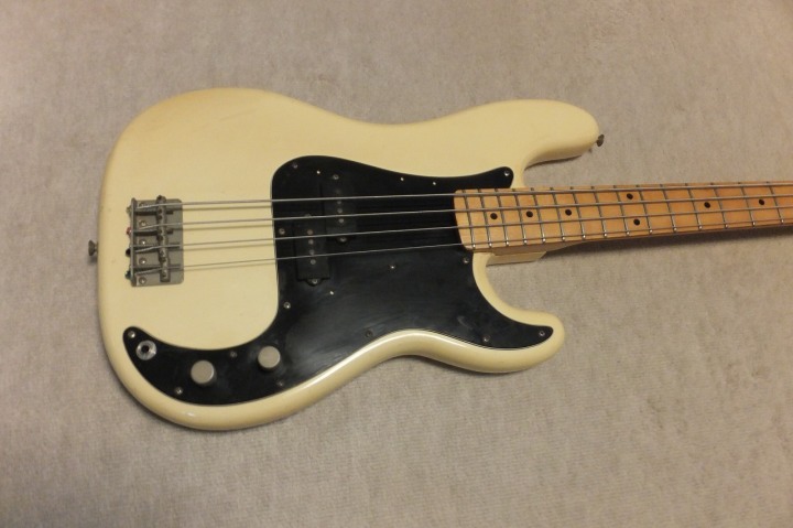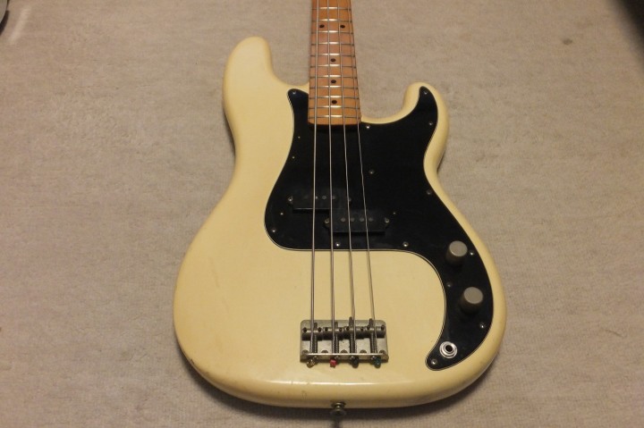 | Tokai Precision Bass PB-40 <Hard Puncher> It is fair condition 1981+ made Tokai precision Bass Replica The logo mark is the early time one. The condition is standard level as over 30 years old. The body has several small dents and scratches. Please refer the picture. However, functionally, it is good to play. The neck is fine, 1P Maple neck, truss rod is workable. The nut width is 41.7 mm. The frets are proper condition too. The body material should be Sen (Japanese Ash) 3p, it is standard weight (3.85Kg) with other Tokai Hard Puncher bass. The sound, it is PB tone, it has good heavy bottom tone. We are going to ship this bass with used Gigbag. Please try JV Precision Bass! |