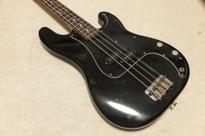 | Tokai Precision Bass PB-40 <Hard Puncher> It is fair condition 1981+ made Tokai precision Bass Replica The logo mark is the early time one. When I checked the bass, I found many dents. Well, this is fair condition bass. The metal parts are rusted as aged. I didn't polish them to keep the vintage taste. The neck is fine, 1P Maple with rose finger board. the truss rod is workable. The nut width is 41.5 mm. The frets are proper condition too. The body material should be Sen (Japanese Ash) 3p, it is standard weight (3.94Kg) with other Tokai Hard Puncher bass. The sound, it is PB tone, it has good heavy bottom tone. The electric circuit is original too. I just put electric lubrications into the pots. We are going to ship this bass with used Gigbag. Please try JV Precision Bass! |