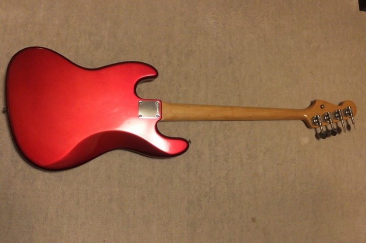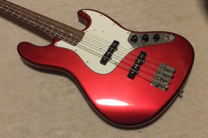 | Tokai JAZZ Bass made in 1978-80 It is fair condition 1978-80 made Tokai Jazz bass. When we got this bass, the frets were damaged. So, we refretted all at our guitar shop. This is professional treatment. We have changed the nut also. The neck is fine, the truss rod is workable. The nut width is 38.6 mm. The body material should be Sen (Japanese Ash) 2-3p, a bit heavy weight (4.23Kg). Generally good condition bass. The sound, it is good JB tone. No Noise and more sustain, I felt. If you will play the good melody, this bass shows you very good tone! We are going to ship this bass with used Gigbag. Please try JV JAZZ Bass! |