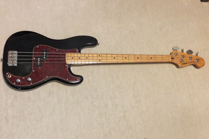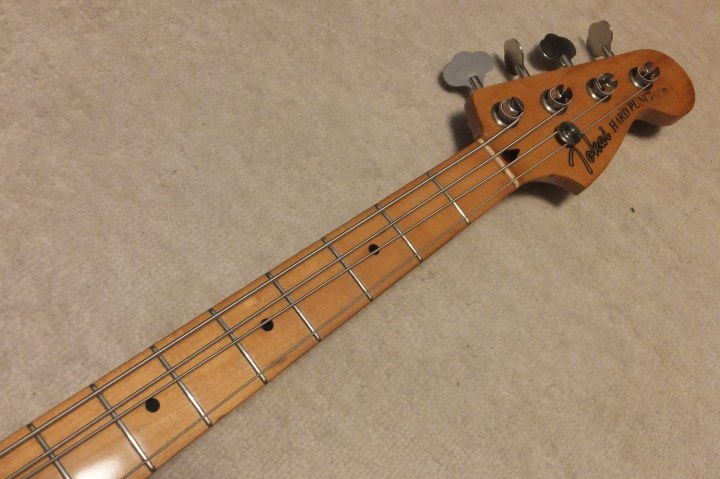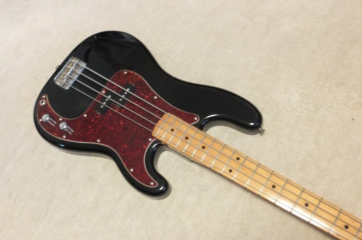 | Tokai Precision Bass PB-40 <Hard Puncher> It is fair condition 1981+ Tokai made precision Bass Replica The logo mark is the early time one. Partly logo mark were peeled off. Just check the picture. When I got this bass, the electric circuits were damaged. The knobs are missing too. I have changed these to brand new replacements. (Gotoh Pod, Switchcraft Jack and Orange drop capacitor) The screws are changed to stainless made. The neck is fine, 1P Maple finger board. The truss rod is workable. The nut width is approx. 42 mm. The frets are worn but still O.K. (not necessary to re-fret). The body material should be Sen (Japanese Ash) 3p, it is 3.91Kg. As Tokai PB, it is light weight body. The sound, it is PB tone, it has good heavy bottom tone. We are going to ship this bass with used Gigbag. Please try JV Precision Bass! |