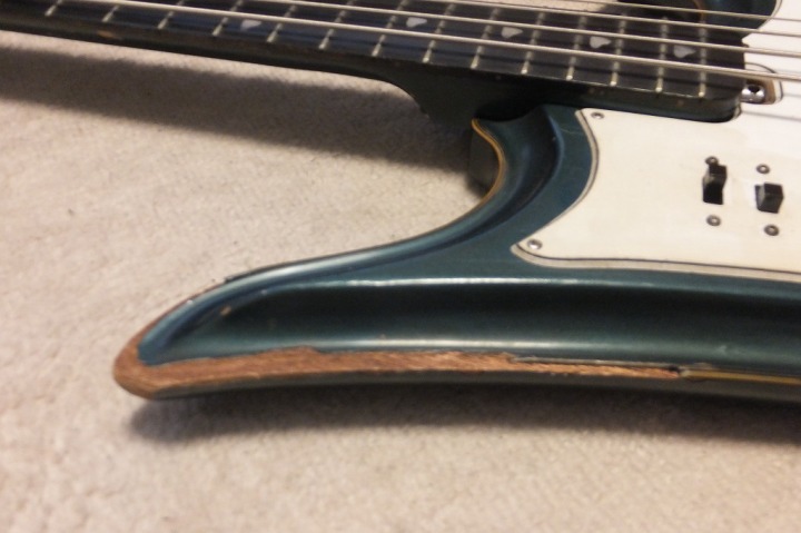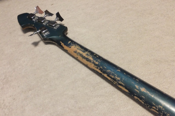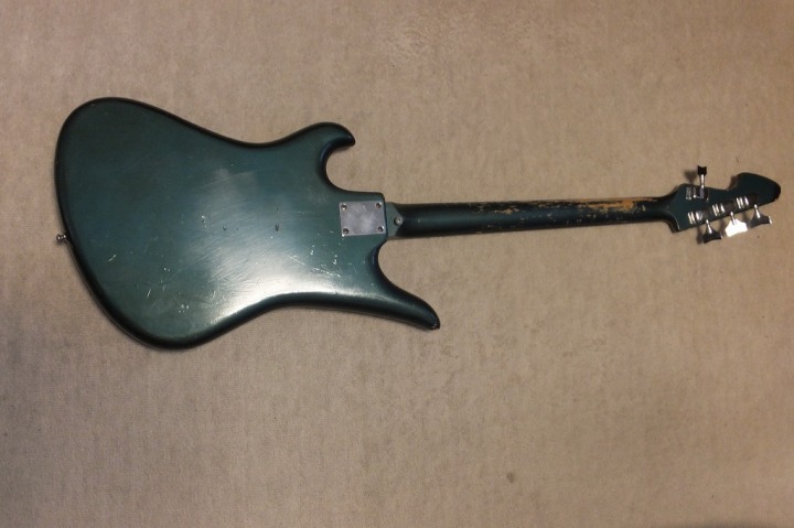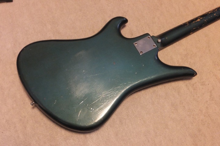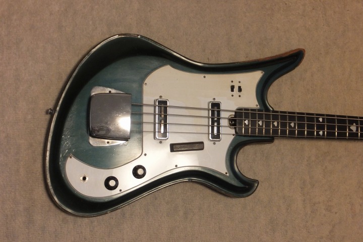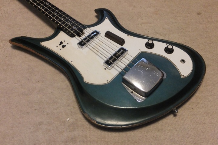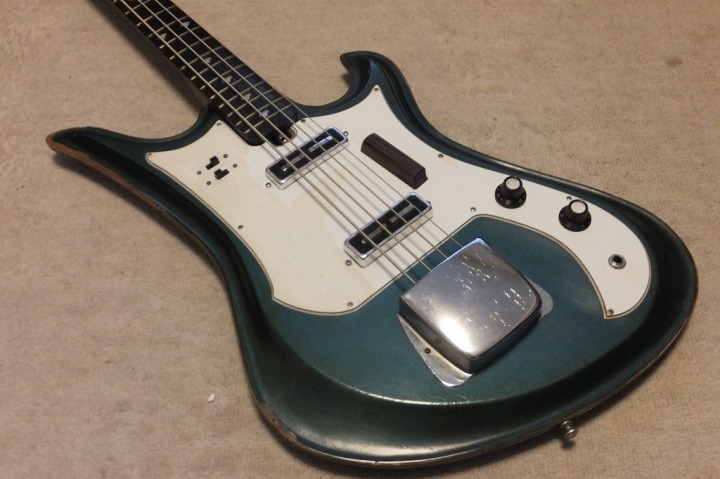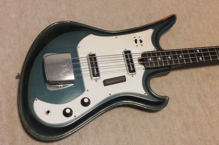 | TEISCO Spectrum Bass 1960's made This is original Teisco Spectrum bass. The previous user replaced the pick guard and switches. Well, it is very difficult to find out the original spectrum both guitars and basses. I got this bass for checking purpose.. I would like to make a Teisco replica one day. Kawai made re-issue model in 1990-1996 time. The re-issue is slight;y different from original I heard. Over 50 years ago, Teisco made this unique designed bass. I love it pretty much. The sound is not really good. This bass has many damages. However, these are not fatal damage. The body edge was damaged and some of binding are taken off. The pick guard is probably changed and 2 switches too. I'm not sure about the body material. The recent replica specification is Mahogany and Maple neck...But I'm not sure this original bass. I do not have an intention to sell this bass. Just have a look for your reference. |