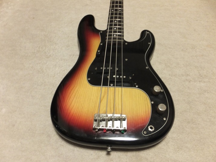 | Tokai Precision Bass PB-40 <Hard Puncher> Sunburst It is Mint- condition 1979+ Tokai made precision Bass Replica The logo mark is the early time. Just check the picture. This bass is pretty good condition as 70-80 made Tokai bass. We checked, cleaned and adjusted. Only this bass has the rust on tuning knobs. The neck is fine, 1P Maple with rose finger board. The truss rod is workable. The nut width is approx. 41.7 mm. The frets are worn but still O.K. (not necessary to re-fret). The body material should be Sen (Japanese Ash) 3p, it is 4.15Kg. The sound, it is PB tone, it has good heavy bottom tone. We are going to ship this bass with used Gigbag. Please try JV Precision Bass! |