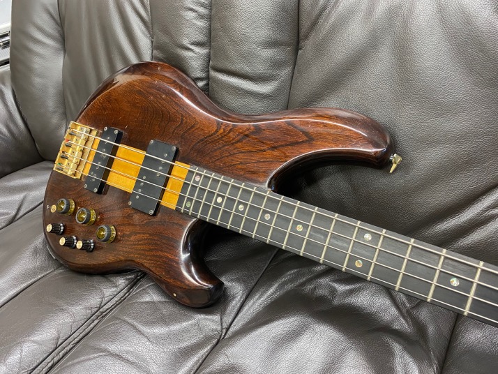 | Ibanez Musician MC924 Many people love the Ibanez MC bass. This 924 was made in 1983. It is getting 40 years old soon. If my remember is fine, the first MC bass came up in 1979 as MC900. They developed MC with many functions after a few years. I kept this bass for a long time. Recently, I took it from my storage room and check it again. Many people said the weight of MC is pretty heavy. Yes, It is. This bass is approx. 4.55Kg. It is very heavy for me. The control is balancer, volume and tone. Small switch is active/passive selection. It has the 3 band EQ. All are fine to control. The through neck construction offer the long sustain. Yes, the neck is straight and frets are proper. Scale? 864 mm approx. same as Fender. If you love the Ibanez MC bass, this should be a one you should have it. The hard case is included but not Ibanez original. Well, enjoy JV bass ! |