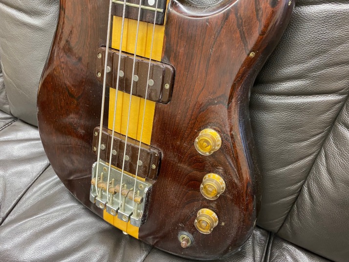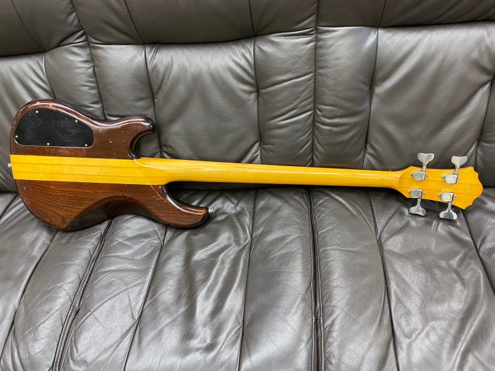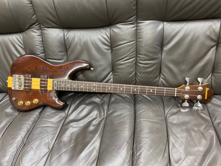 | Ibanez Musician MC824 Many people love the Ibanez MC bass. 824 was made in 1980 as very early model. It has Maple/waknut 5P though neck construction. It made very long sustatin and good durability. Many people said about the weight of MC, it is pretty heavy. It made a pretty hevy tone, anyhow. This model has the single PU. The control is balancer/volume tone ans selector switch. First set ho the PU balance, the selector is giving you set balance. Very regretfully, previous user lost the truss rod cover. Also the volume knob rubber belts are missing. Actually, I do not like Ibanez speed way knobs. I like solid type (like Tele) better. So, I offer this bass a bit lower than others. If you love the Ibanez MC bass, this should be beside you as one of MC series. We will ship the bass with Ibanez original Gig bag. Well, enjoy JV bass ! |