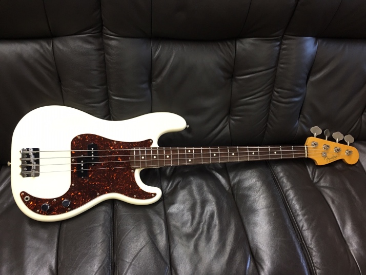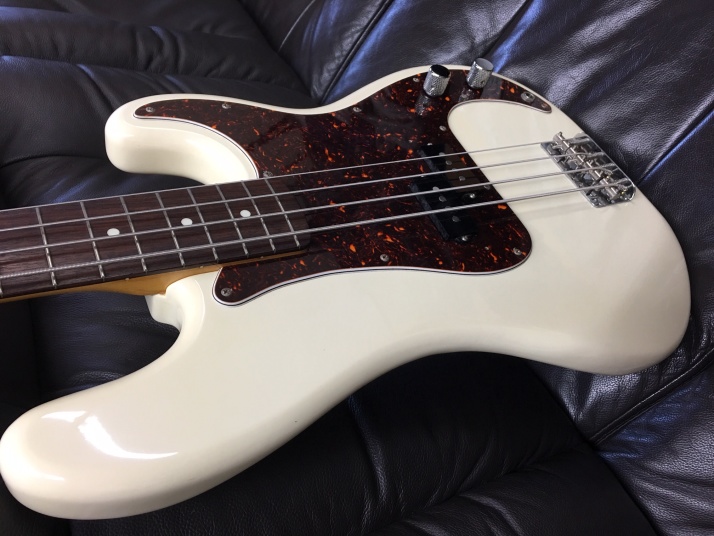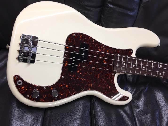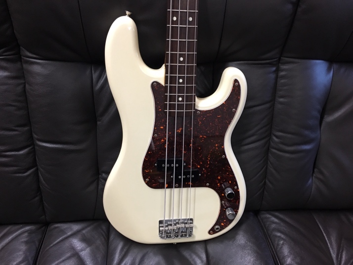 | Fender Japan PB62-55 W/Rose Fujigen Made MIJ JV serial This is good condition JV serial Precision Bass. From serial, this bass was made between 83 and 84. According to the Fender Japan Catalog, this model have Japanese Made PU type. I didn't change anything for this bass. I checked only neck and bridge. It should be O.K. The electric circuit is all original. The wood would be the Alder or basswood. The weight is 4.18Kg The neck is maple 1P (Nut Width 42mm) Truss Rod is working but tighten maybe 60%. Currently, the neck is straight and good feel. The frets are proper condition.The strings height is approx 2 mm at 12F. The body condition is good. There are very small scratches and dents. it is over 25 years old bass. Think about the age, this looks is vintage looking. This bass is Poly finished, not Nitro, anyway. The metal parts are proper condition. We are going to ship this bass with the original gig bag which is in the picture above. Of course, if you would like to get the brand new hard case, we could prepare suitable. Well, enjoy real JV serial bass |