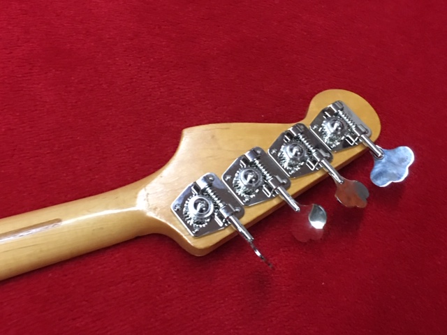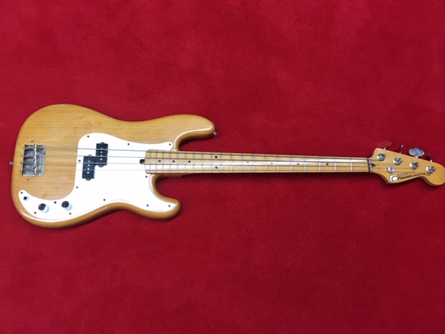 | Fernandes Precision Bass Tokai Made This is probably 1978-1980 Tokai made Fernandes Precision bass. It should be FPB-50 from hard ware and body material. It looks very good bass. But there are several dents and scratches. Well, the picture of natural body could not show you those dents and scratches clearly. The neck is straight not twisting (2.5mm at 12F). The truss rod is adjustable. The nut width is approx 40.9 mm. The body is probably Sen (Japanese Ash) as Fernandes described on their catalog. It should be 3P with 4.7 Kg weight. The frets are proper condition (bit worn) The PU is Fernandes Original. I have replaced the tuner to brand new Gotoh. The knobs are relaced with brand new one. The nut was changed by previous user. We going to ship this bass with gig bag. This case is not Fernandes original. Well, enjoy JV bass ! |