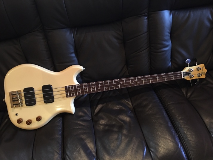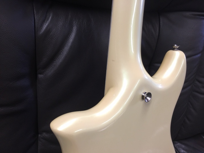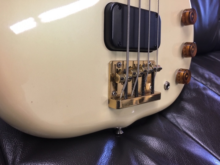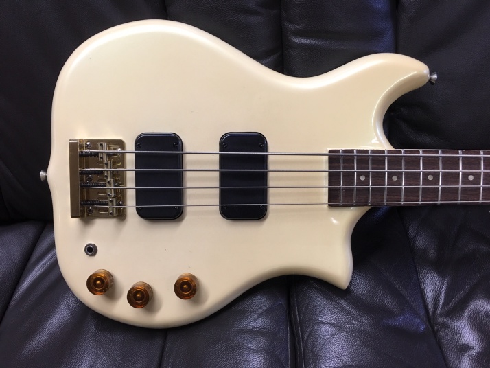 | Kawai F2B Through Neck bass I'm not sure when this bass was built. Probably, mid of 80's made. I've checked Kawai old Catalog, however, the same specification model was not listed. Anyway, I like this bass from my teenager time. It was so expensive bass at that time. Alembic bass were pretty popular that itme. So, many Japanese manufacturers made the though neck type bass and guitar. Kawai F series guitar was ome of them, but it we expensive, I remeber. I have been looking for F bass and guitars both. This is first FII-B bass for me. I have alos FI-Jr guitar here. Both of them are very good condition. This bass is very good condition. There are no seriaous dents and scratches, Of course, no rust. no modification. |