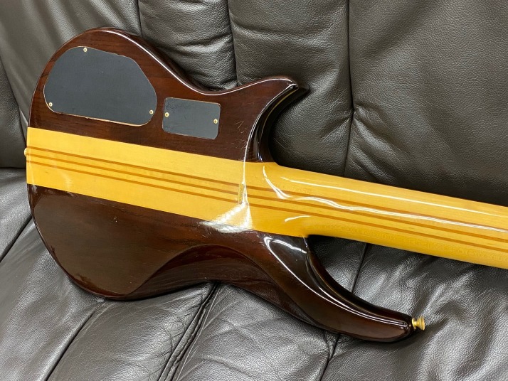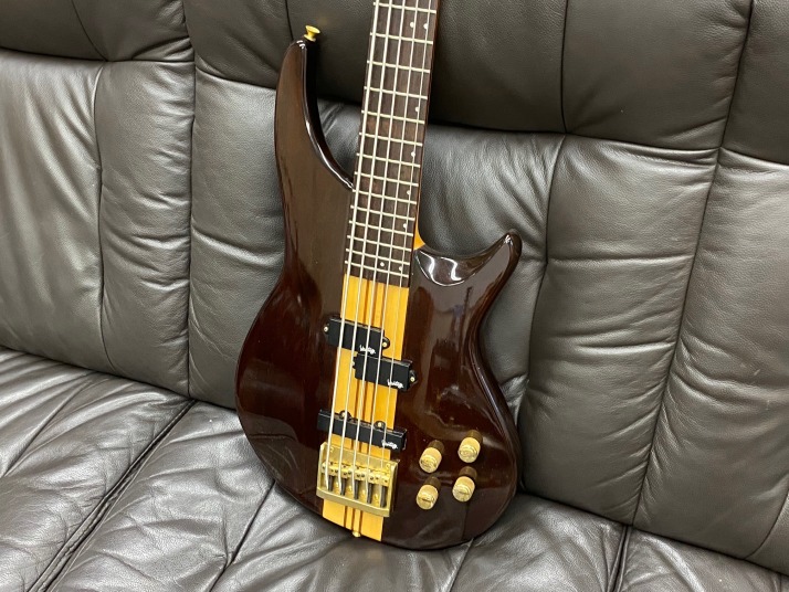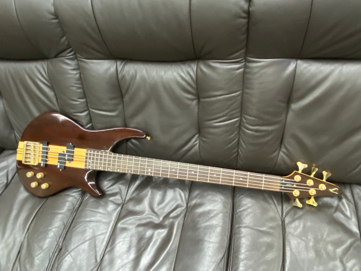| Vantage 955BA 5 strings bass This bass maybe not Matsumoku made. Wll, Vantage is just brand name were registered by JEM Indsuties Ltd. , Canada. They are the musical whole sale and distribtion corp both Canada and USA. In early days, Matsumoku used the vantage brand for overseas market. Probably, it just like OEM base business for JEM. Well, this bass is probably Korean Samick made products. Matsumoku was bankrupted in 1987. Therefore, after 1987, it should be Korean made or others. I have a few Matsumoku made Vantage guitar. These are pretty good instruments. Looks like Aria Pro II very much. Korean Vantage is not really great works. I had 2 guitars, but gifted for my friends. About a few months ago, I saw this bass. I felt this is not Japanese made, but I bought it. Becasue I want to have 5-string bass. I had a Fernandes 5 string before, I sold it. Anyhow, I would like to het 5 string. The qulity is not so bad. The neck is not really wide type. A bit wider than 4-string. So, I need some practice. However, sound is fine. I like it very much,. |