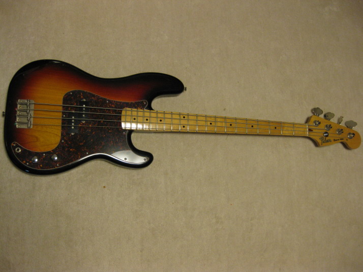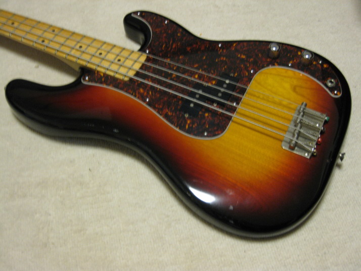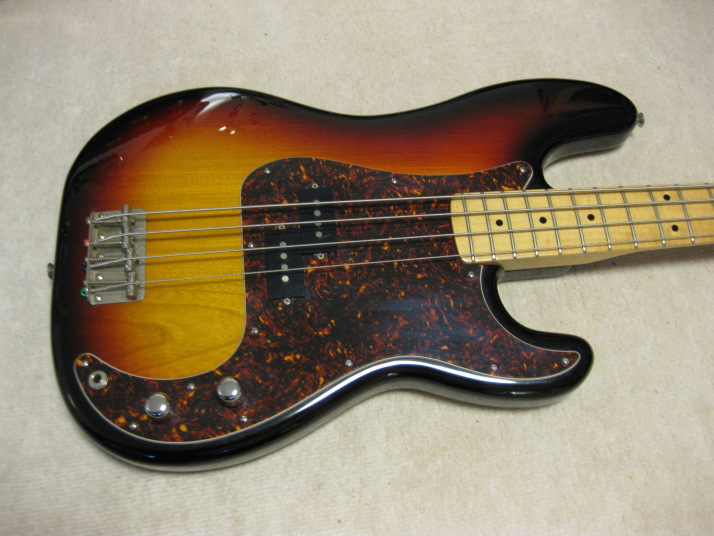 | YAMAHA Pulser Bass Precision Model Late 70 Made Yamaha Pulser Bass made by Kasuga Gakki in 1976-78. I have been keeping this bass for a long time. I thought I should repair the neck head behind. The previous owner changed the tuner at least 2 times. There were many holes. I have fixed them recently. The 2nd-4th string whole areas have a bit paint crack. I have repainted head back, but I didn't do the head front, because I want to keep the logo mark. Those cracks are no problem for playing, anyway. Pick Guard was changed to other brand. I found the extra holes below Pick Guard. Of course, you could not see them. The neck is straight and no twisting. The truss rod is adjustable. The frets are a bit worn but still O.K. for playing. The neck shape is like C as Precision bass. The Nut width is 41.7mm The Sen 2PLY 2-3P body with 3.91Kg. This is not regular Yamaha Bass weight. Very light! The metal parts are not really rusted. These looks good. The screws are changed to brand new. As 30 years old bass, this is generally good condition bass. I offer this bass a bit lower than others. I did a bit repair and not original parts are used. We are going to ship this bass with used Gig Bag. Please try JV Precision Bass! |