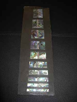 アバロン貝2種類を合わせたブロックインレイのセットです。プロのギター製作家用インレイ材を製造している米国のルシアー・サプライ社に特別に注文したセットです。もちろん、お手持ちのギターのフレットボードにもご使用いただけます。天然のアバロン貝は樹脂製とは違い、見る角度から輝きが変わります。また、ギター全体のイメージも変わり、高級感が増します。交換には多少の技術が必要ですが、焦らずじっくりと構えて交換してください。ギターの製作をされている方は、説明不要ですね。ヤマトメール便にてお届けします。送料は全国均一80円です。(インレイはボードに割れ防止のため、接着してあります。ぬるま湯に付けて