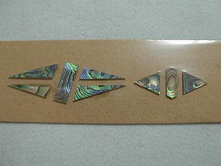 インレイの王者とも言えるダイヤモンドインレイのプリカットです。 貼りものでは無い、一枚もの、本物のアバロン貝を使用しています。特別に注文して製作したプリカットセットです。