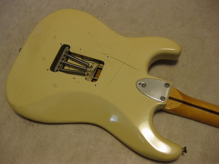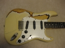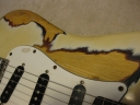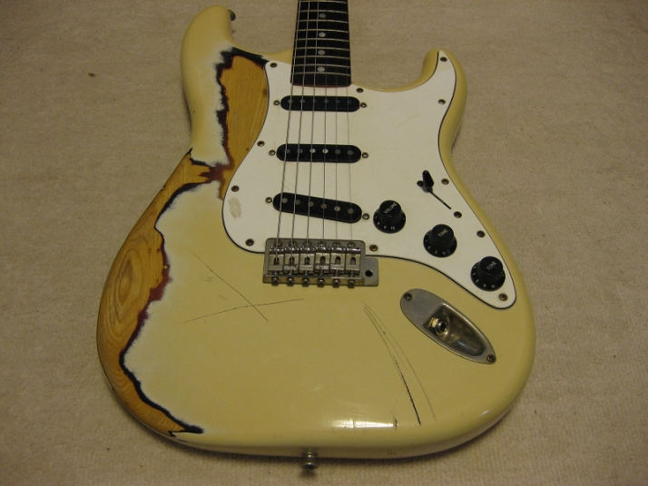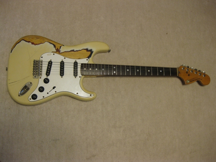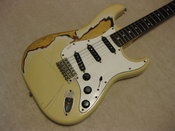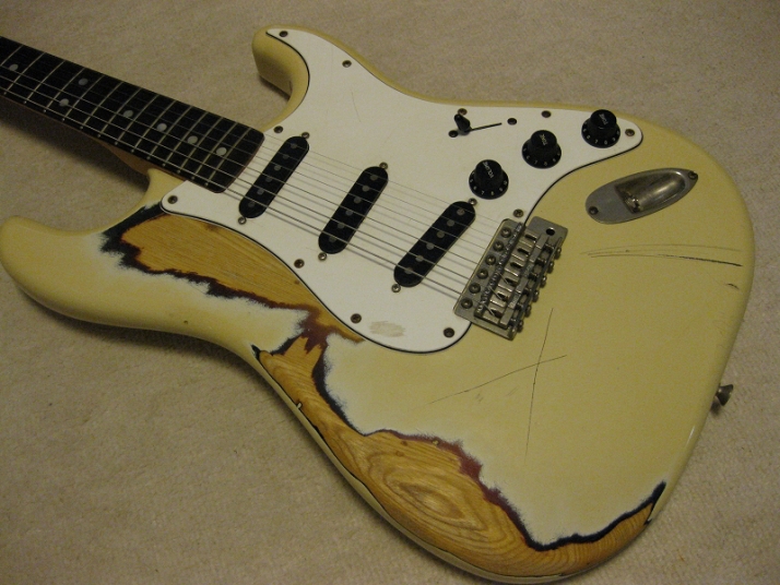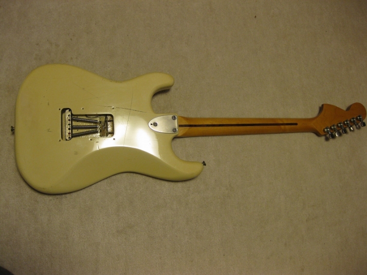 | Fernandes FST-50 1978-79 Tokai Made Stratocaster This is poor looking FST-50. Well, the sound and functionally it is fine. The neck is straight and frets are proper condition (got worn, but still O.K.) with C grip. The truss rod is O.K. The nut width is almost 41mm The body is SEN (Japanese Ash) 3P. It is 3.7Kg weight. The parts are original condition. I have checked the electric circuit and found out the break wire. So, I just replaced the wire to Belden Silver coated copper wire. I also put the Spruge orange drop. The tuner is original Fernandes. I just clean up. The PU cover and knobs are not original. The dents, scratched, un-painted are not seriously effected for playing. Just enjoy like vintage looks. The guitar will be shipped with used Gig bag. If you need the hard case, the brand new case is available as option. Please try JV guitar !!! |