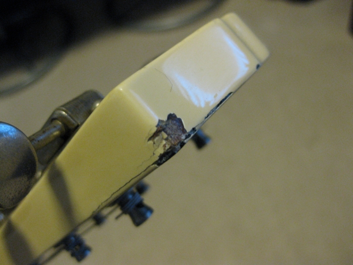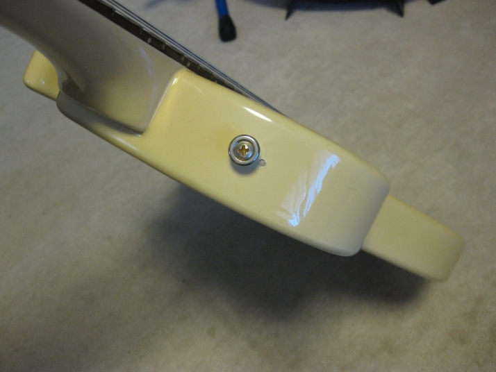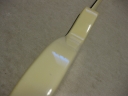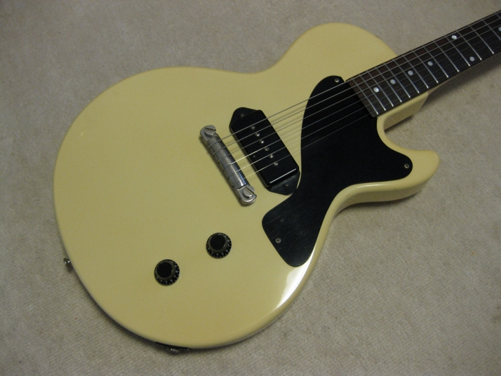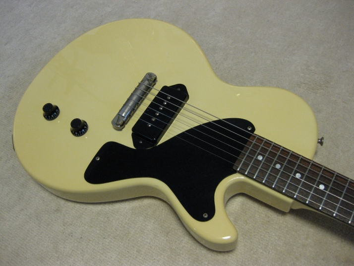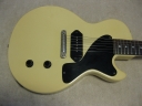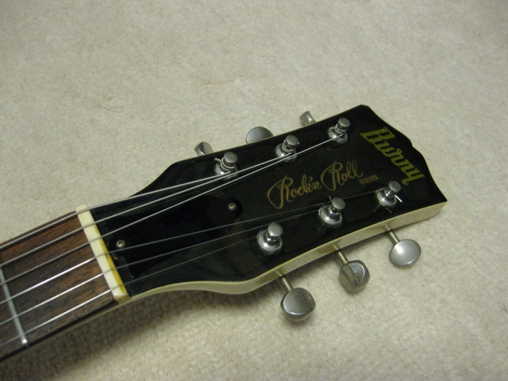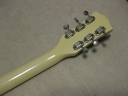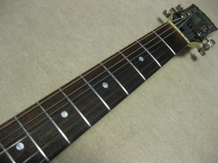 | Fernandes RLJ-55 Les Paul Jr. This is good condition Jes Paul Jr. model. It should be early 90's model from Fernandes Catalog. There are not so many scratches and dents. I could see small dent between control knobs. The edge of neck head has a dent shown on picture. I also find out the strap pin has been moved. The old screw hole as shown. The neck head, we could see that the top coat paint became a bit milky. The body and neck are Mahogany made from the catalog descriptions. Probably 3P body and 1P neck (nut width is approx. 43-44m) The neck is fine, truss rod is adjustable. The frets are not really worn, The grip is not really fat. I think it is like standard Les Paul grip. The weight is 3.34Kg The PU is original. It is pretty good tone. Typical P-90 single type pick up. It is good looking about 20 year old guitar. We are going to ship this guitar with soft carrying case. This is good t JV guitar! |