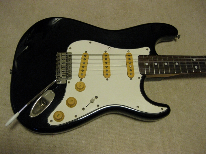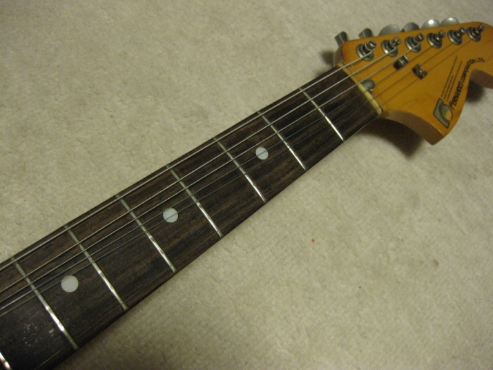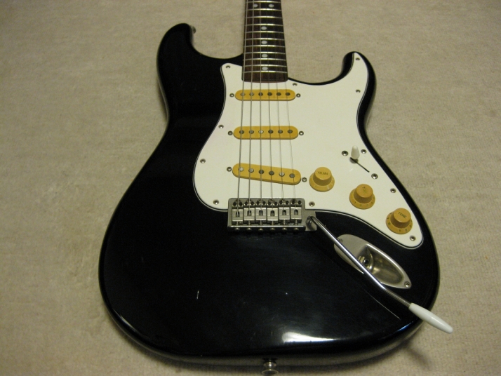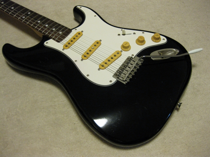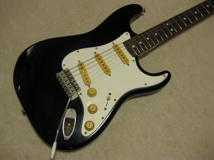 | Fernandes 1978-79 Tokai made Stratcaster model 1978-79 Tokai made Fernandes strat. This is one of high rate evaluation guitar by many professional people. Fernandes made this model by the time they started the revival series. Japanese collectorssaid "Stone Logo" type. The body is SEN with good wood pattern. It is 3.79Kg. The neck is mapl 1P with 40.85 mm nut width. Th neck grip is stndard C. Maybe you could fel a bit thin compare with Fender Japan Start. The frets are bit worn, still proper condition. The PU is original. It is pretty good tone. The selector switch is 3 way type. The tuner is Rotomatic type. We are going to ship this guitar with soft carrying case. This is good t JV guitar! |