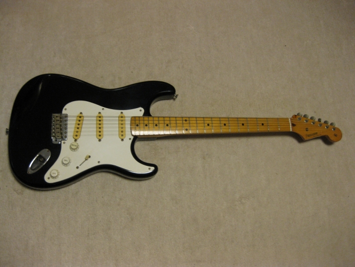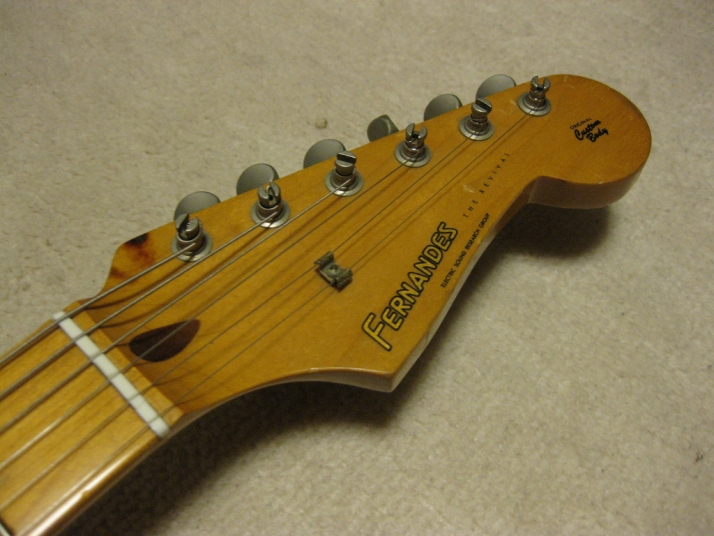 | Fernandes Revival RST-50 Stratocaster This is fair condition Revival stratocaster replica. Well, I rated mint-, because body surface have a bit dents and scratches. It looks like more vintage guitar, anyway. The neck is straight and frets are proper condition. Good C standard grip Maple 1P neck with Ash body (maybe 3P). It is 3.69Kg. The metal parts are bid rusted. This is 2nd generation Revival, so it should be in 1990's made. The tone, it is very good tone, I love. This is why many players want to use this series. Please try the real JV guitar! We are going to ship the guitar with used Gigbag. |