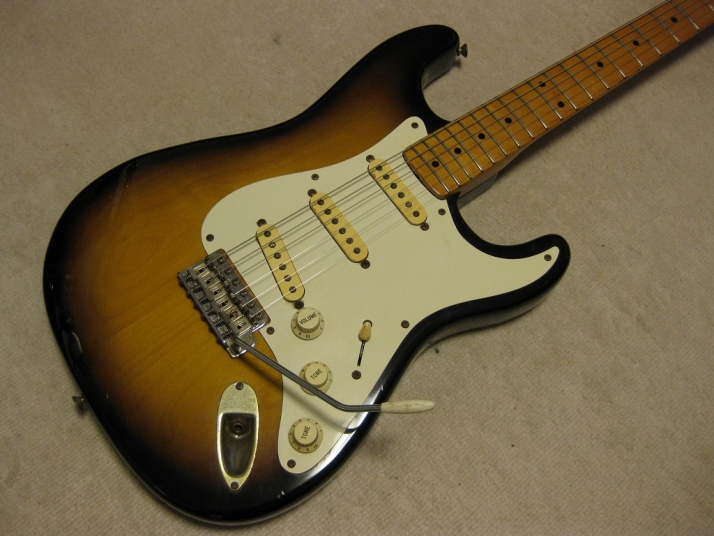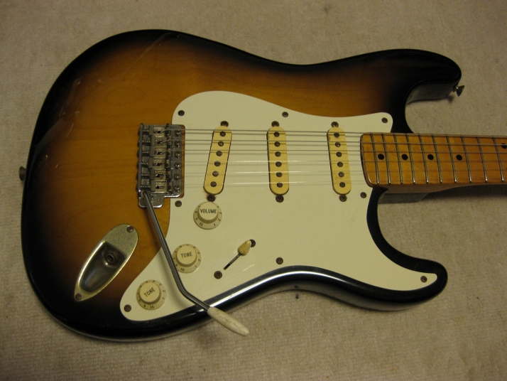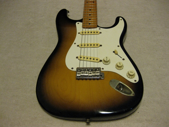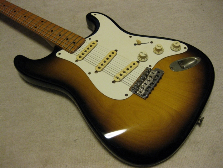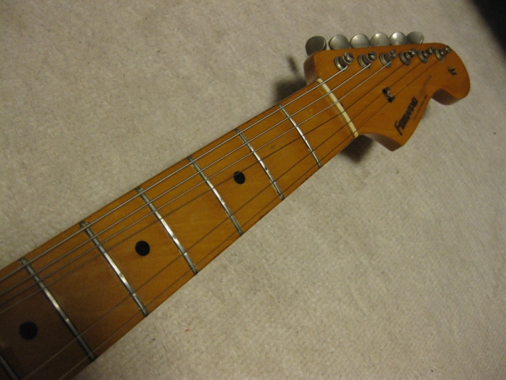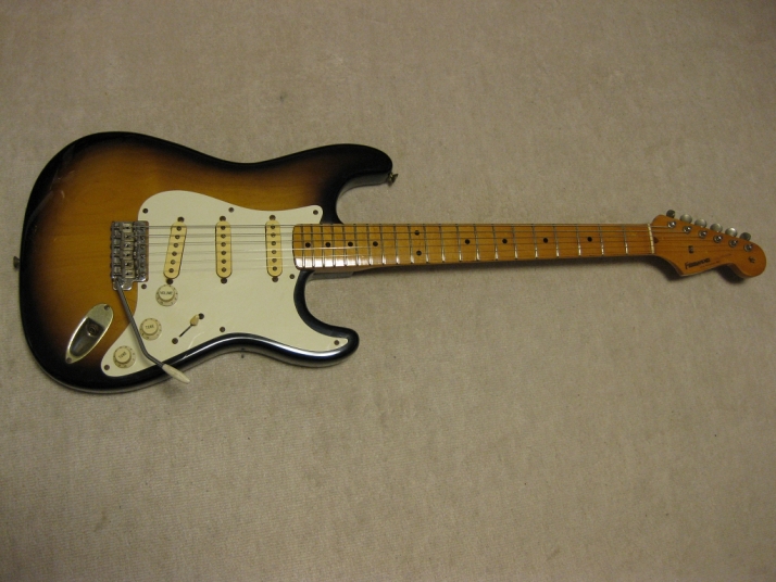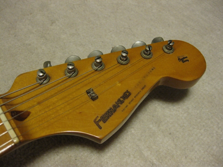 | Fernandes Revival RST-50 Stratocaster Sunburst Alder Body This is proper condition Revival stratocaster replica. Well, I rated mint-, because body surface have a bit dents and scratches. It looks like more vintage guitar, anyway. The neck is straight and frets are proper condition (Low positions are bit worn) Good C standard grip Maple 1P neck. The nut width is 41.9mm The body is probably alder body(maybe 3P). The sunburst color body and natural body could tell us the body material easy. It is 3.55Kg. It is standard weight as stratocaster model. The metal parts are a bid rusted. This is 1st generation Revival, so it should be in 1983-88 made. Of course, the bridge saddles have the revival marked. The tone, it is very good tone, I love. The pick up are all gray bobbin type. This is why many players want to use this series. Please try the real JV guitar! We are going to ship the guitar with second hand gigbag. |