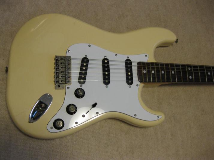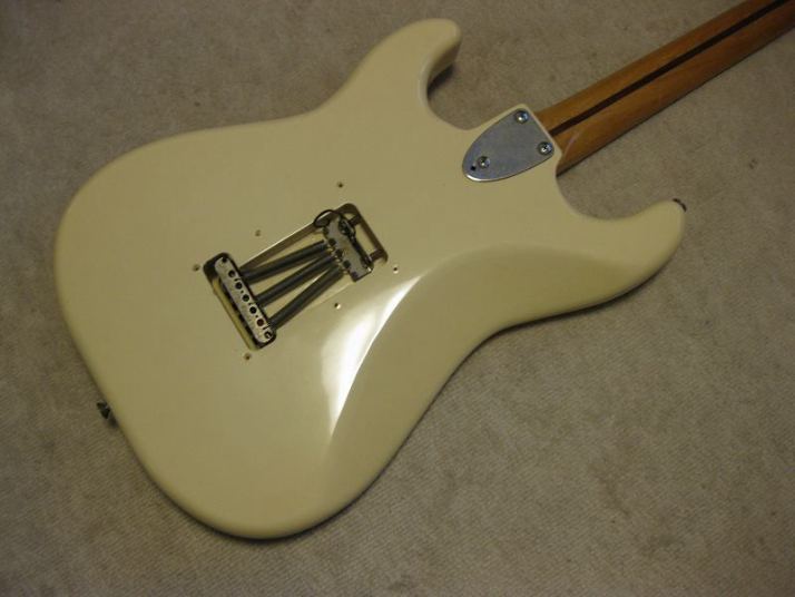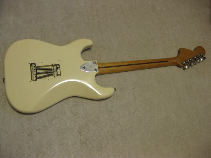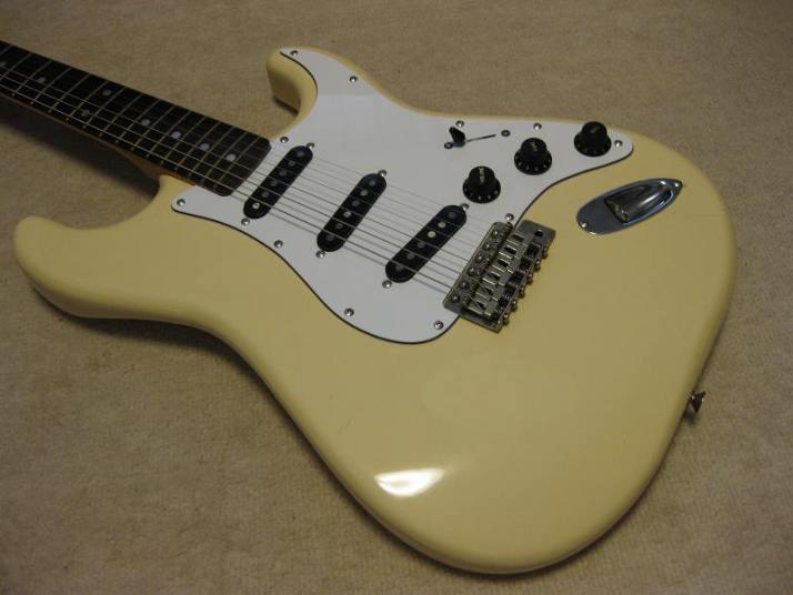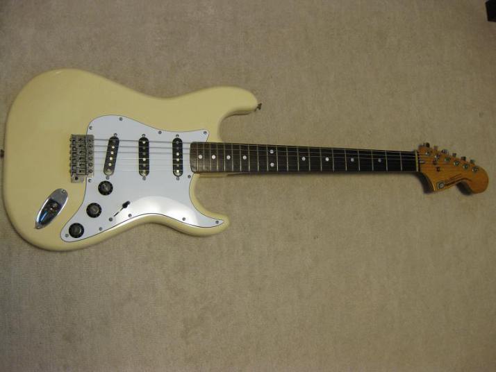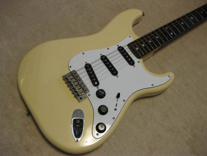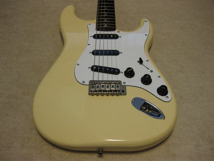 Fernandes 1978-79 Tokai made Stratcaster model This is one of high rate evaluation guitar by many professional people. Fernandes made this model by the time they started the revival series. Japanese collectorssaid "Stone Logo" type. The body is SEN with good wood pattern. It is 3.66Kg. The neck is maple 1P, Rose wood finger board. The nut width is 41.65 mm. The neck grip is stndard C. Well, the neck is straight no twisting. Maybe you could feel a bit thin compare with Fender Japan Start. The frets are proper condition. The previous user changed the electric circuits. I have changed all Pot, Switch and Jack as original circuits. The Pot is Gotoh Made, Switch is Oak, Jack is Switchcraft. Well, thecapacitor is orange drop. The outlook is not so bad...but it is over 30 years old guitar. Please do not expect the brand new guitar. The paint of neck pocket is cracked a bit. We are going to ship this guitar with soft carrying case. This is a good JV guitar! Enjoy it! |
