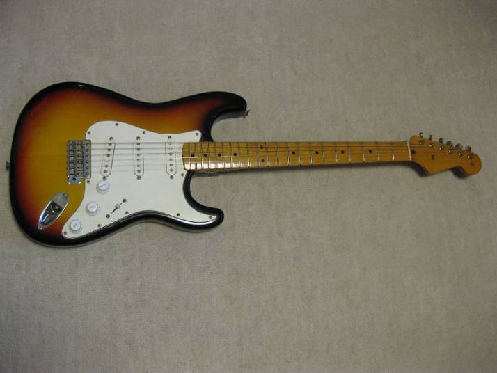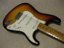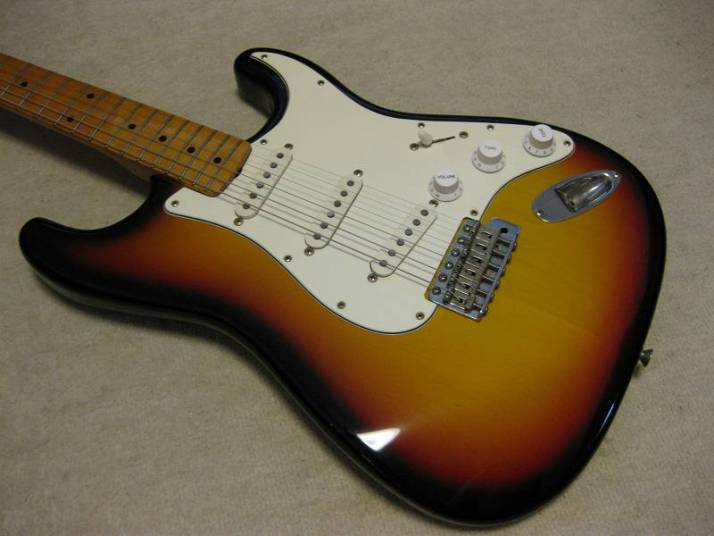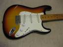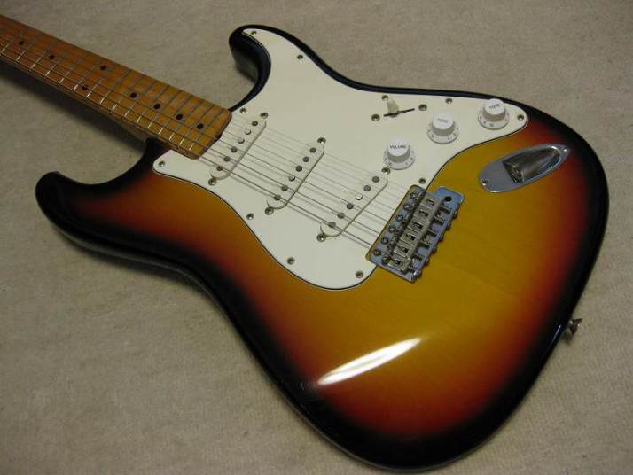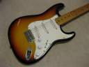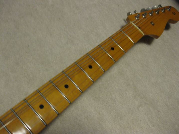 | Fernandes Revival RST-50 Stratocaster "Logo Mark" is gone! This is 1st generation revival stratcaster. As you may know, the logo mark of 1st revival is easy to erase. It is very regretfully, the logo of this guitar was taken. I also check the neck detailed whether original or not. The neck has the stamp saying 57. Well, I saw sometimes Fernandes mixed it. I don't know the detailed. This is fully original except the logo mark. I didn't change the parts. When I checked the electric circuit, I only change the output wires and ground wire to Belden. The weight is 3.6Kg. The neck is 1P maple with the nut width 42 mm I'm not sure about the body material. It looks like 2P body in center. There are some possibility this is 3P.... The body condition is good. There are no serious dents and scratches. Well, it looks like vintage guitar. Please try the JV guitar! We are going to ship the guitar with second hand gigbag. |