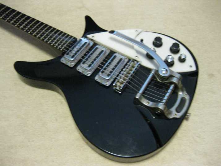 | Fernandes 1992 made RG-80 Rick Replica I don't know so much about 90's made Fernandes Guitar. It was a time I'm not playing the guitars a lot for other business. But early 90's time, Fernandes made many replica. RG-80 is very god replica of Rickenbucker guitar. It is very compact size guitar with 21 inch scale neck. Rick 325 is 20-3/4 scale. This replica is more like the original guitar. I had several Greco 325 model. These are all longer scale than 21 inch scale. The body and PU constructions are also closed to the original. The neck is maple with 40.6 mm width nut. The body is also maple with 3.29Kg weight. As I said, it is very compact guitar. All original condition. Only, the indicator plate of 2 knobs are missing. I would say good condition guitar except the indicator plate. We will ship this guitar with used Gig bag (not original). Well, enjoy JV guitar! |