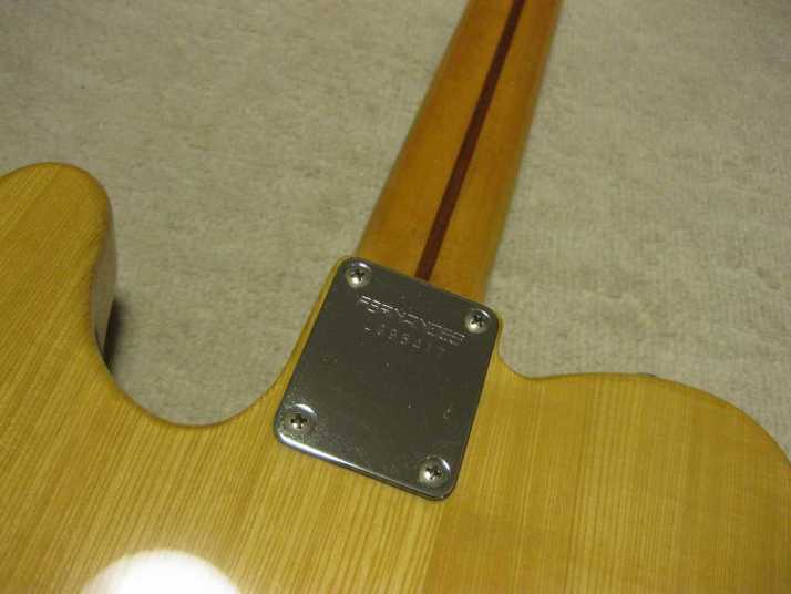| Fernandes RTE-45N Revival Telecaster This Telecaster should be made in 1983-85 early time Revival Telecaster. It is not vintage model, like 76 model. However, good condition. It looks like Ash 3-4P body. I think this is original parts equipped. Probably no change and replaced. The neck is straight and frets are proper condition with C grip. The truss rod is O.K. The nut width is almost 42.5mm It is 3.36Kg weight. It is right weight even compare with my other RTE-45. Well, if you are looking for the good conditioned over 20 years old guitar, this is it. Please try JV guitar !!! |