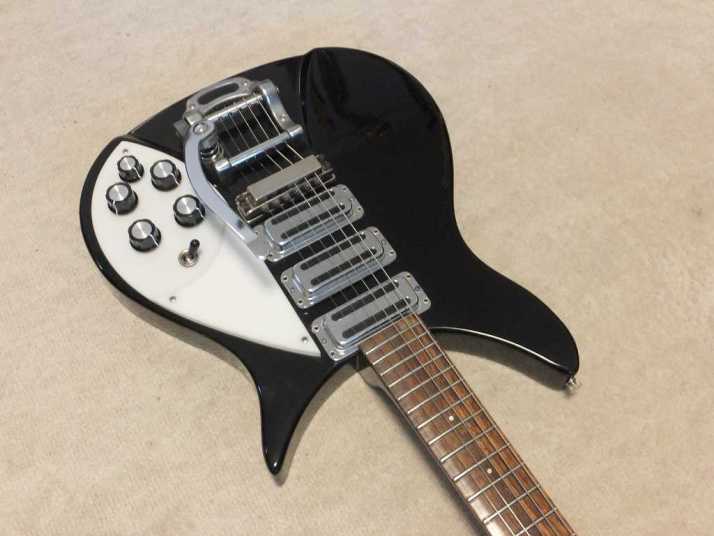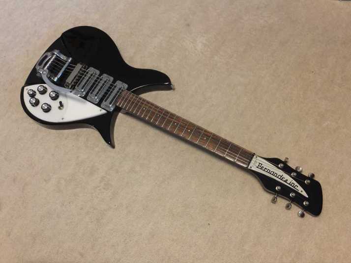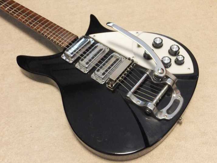 | Fernandes 1992 made RG-80 Rick Replica I don't know so much about 90's made Fernandes Guitar. It was a time I'm not playing the guitars a lot. concentrated other business. But early 90's time, Fernandes made many replica. RG-80 is very god replica of Rickenbucker guitar. It is very compact size guitar with 21 inch scale neck. Rick 325 is 20-3/4 scale. This replica is more like the original guitar. I had several Greco 325 model. These are all longer scale than 21 inch scale. The body and PU constructions are also closed to the original. The neck is maple with 41 mm width nut. The body is also maple with 3.29Kg weight. As I said, it is very compact guitar. All original condition. I have just replaced the knobs, the previous owner lost 3 of knobs. We will ship this guitar with used Gig bag (Probably original, no Fernandes logo but suitable for this guitar size). Well, enjoy JV guitar! Well, enjoy JV guitar! |