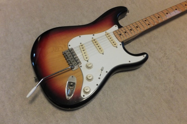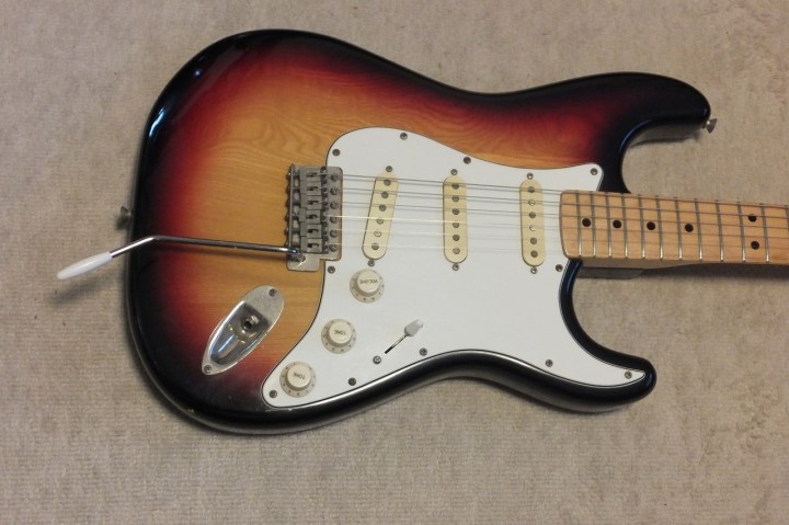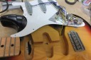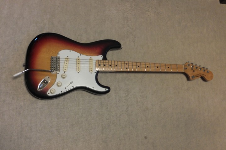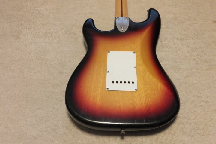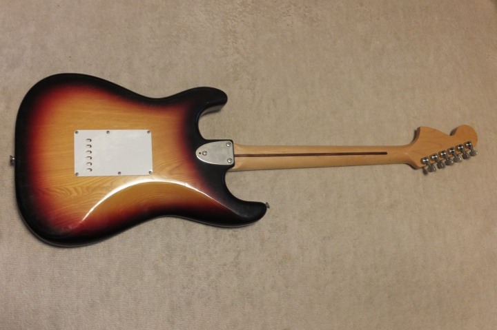 | Fernandes 1978-79 Tokai made Stratcaster model This is one of high rate evaluation guitar by many professional people. Fernandes made this model by the time they started the revival series. Japanese collectorssaid "Stone Logo" type. I personally like this series. It is not really collector item. Many people just look for the good replica. Most of them are not care about the tone. Anyway, this guitar is good I love. The body is SEN with good wood pattern. It is 3.53Kg. The neck is maple 1P, Rose wood finger board. The nut width is 41.7 mm. The neck grip is stndard C. Well, the neck is straight no twisting. Maybe you could feel a bit thin compare with Fender Japan Start. The frets are proper condition. The previous user didn't change the parts. I think it should be original condition except army bar.. We are going to ship this guitar with soft carrying case and army bar. This is a good JV guitar! Enjoy it! |
