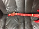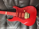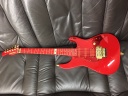 | Fernandes Strat L'Arc`en`Ciel Ken Model Red This is Japanese musician model Fernandes endorsed. The Guitarist name is "Ken" on L'Arc`en`Ciel. I'm not sure their music well, even now. But we have received many requests of this guitar. So, We are collecting this red guitar always. My first impression of this model was not really good. I hate the color. However, after getting this guitar, my impression of this guitar has been changed. The reverse neck is making a different tone because of tension. The licensed FRT(Terauchi made) is very smooth and keep a tune well. Probably, previous owner change the bridge anchors, but it fixed well. I don't know Fernandes is exporting this model officially or not. But I feel they should sell this model worldwide. The neck (nut width 42.7mm), frets and electric circuits are proper condition (as used guitar). The body weight is approx. 3.45Kg. The army Bar is missing, so we offer it with some discount compare with complete item. The soft case (second hand) will be delivered with this guitar. This is not really JV guitar, but Please try current MIJ Guitar ! |