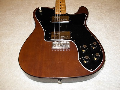 | Fernandes Telecaster Deluxe Model made in 1974 Very old Fernandes Telecaster. We can see Standard Fernandes Telecaster sometimes, but this is Deluxe model. I knew that Fernandes offered both Deluxe and custom, but the number of production were very limited. When I get this guitar, some screws were rusted, not electric wired. I have set up all, all screws are replaced to the new one. The center screw of pick guard was cracked. Therefore, I took off old one and put the new wood and paint it. We can't see this fix place by pick guard, but we should inform you. Other condition is proper as 35 years old guitar. I only feel that the bridge PU output is a bit lower than front. It's maybe caused by magnet weakness, I'm not sure. I recommend you to replace it, if you feel not comfortable. The neck is O.K The frets are low. Still can be used. But if you are using this guitar very often. you may need to re-frets oneday. The tuner has been replaced with Rotomatic type (maybe Gotoh). We would provide you the used soft case when we deliver the guitar. Well, enjoy Fernandes Vintage Guitar ! |