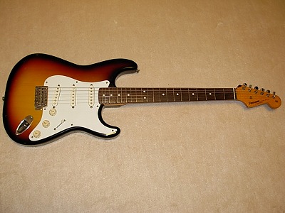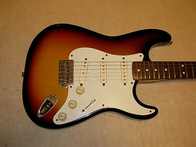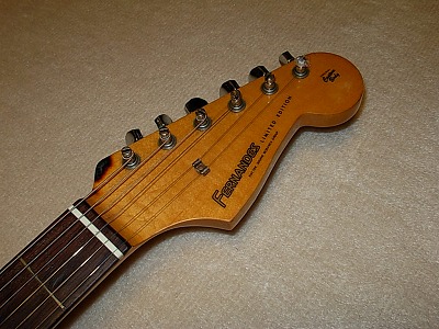 | Fernandes Late 80 - Early 90 made Stratocaster This is probably late 80- early 90 made stratocaster. It said Limited Edition on the head. I estimated the production year. The evaluation of market is not really good compare with Revival series. Because, the revival series used a bit better wood. However, I feel that the quality of limited edition is not really bad. This guitar, should be 4P body because of cost. But the tone is good. The tuner has F marked type. It is not really good looking, but they used this because of cost effectiveness. The neck, frets and electric circuits are fine. actually, good value for this quality. Hope, you would enjoy JV guitar ! |