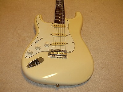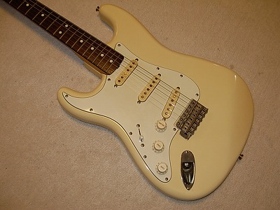 | Fernandes RST Revival Early 80's made Stratocaster Lefty This is very rare Lefty Revival stratpcaster. Well, lefty type is very tough to find out. The condition is very good. The neck, frets and electric circuits are all fine. The metal parts are not really rusted. The bridge saddle has marked "Revival" of, course. I could not play the Lefty well. But I tried it, It is good tone. The price of RST Lefty was about 20% up for the right hand model Well, if you are looking for the Lefty guitar, this is one of JV legend guitar. Please try JV Guitar ! Note : Tremolo arm are not included. We provide you the Fender Japan Lefty bar. |