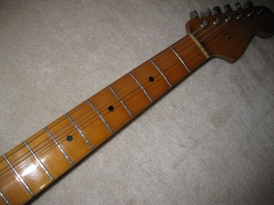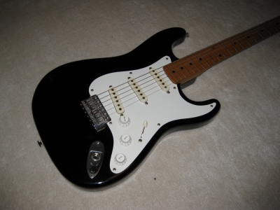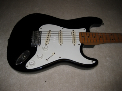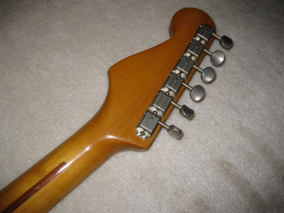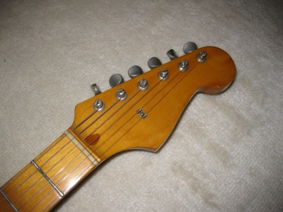 | Fernandes RST Early Revival series 1984 made Original Fernandes Early Revival series FST-50. This is good condition, but the logo mark was removed. As you may know, the original revival series logo mark was sticked on head but no clear painted. It is same as old Tokai sprongy sound. ST. The logo marked was peeled off. The neck and electric circuits are all fine. Frets were bit worn. The neck grip is like C grip, quite srandard grip as 57 model. The metal parts are rusted bit. The bridge suddle have the revival and F.S.R.G Marked on. The weight is 3.63Kg, Fernandes selected a good light weight ash for Revival series. Please try JV Guitar ! |
