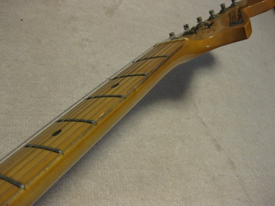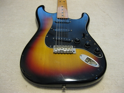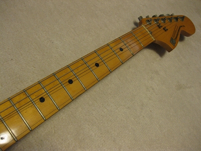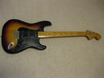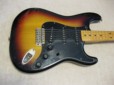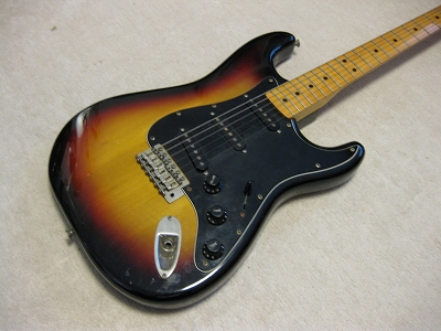 | Fernandes FST 1978-79 Tokai made Stratocaster It is good condition 72 model Stratocaster. It is probably 1978-79 made. It is good replica. I feel it is better than 78-79 made Fender original stratcaster. The neck condition is good. Of course, it is straight and truss rod is working O.K. The frets are bit worn, but still O.K. for playing. It is good feel C grip. The PU is original. Metal parts are bit rusted, but these made a vintage looks too. It is 3.47 Kg Sen (Japanese Ash) 3P. This is light weight, like early 72-74 made Fender Strat. This body hasn't got serious dents and scratches. But please do not expect the brand new guitar! This is over 30 years old guitar. We will ship the gigbag (used) with this guitar. The original Tremolo arm is missing. We will send the replacement with this guitar Please enjoy JV Guitar ! |