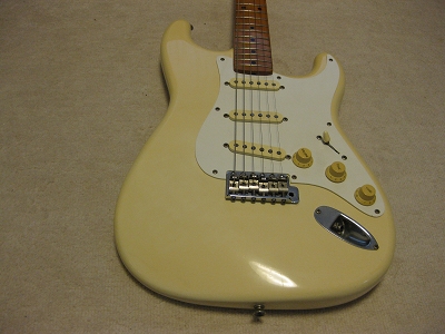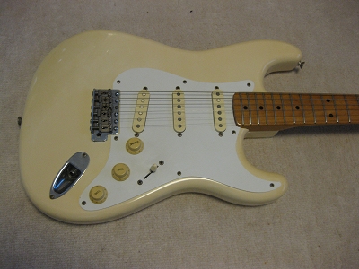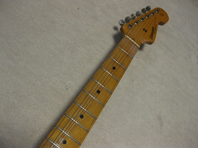 | Fernandes RST Revival Series Stratocaster It is good condition 57 model Stratocaster. It is probably 1983- made. It is good replica. This is original Revival series. It is very good Fender Replica. The neck condition is good. Of course, it is straight and truss rod is working O.K. The frets are fine( a bit worn). It is good feel C grip. The PU is original. Metal parts are bit rusted, but these made a vintage looks too. Of course, the saddles have Revoval stamped. It is 3.65 Kg (Ash) 3P. This is standard weight.This body hasn't got serious dents and scratches. Only neck pocket side, there is a paint crack as shown. We will ship the gigbag (used) with this guitar. The original Tremolo arm is missing. We will send the replacement with this guitar Please enjoy JV Guitar ! |