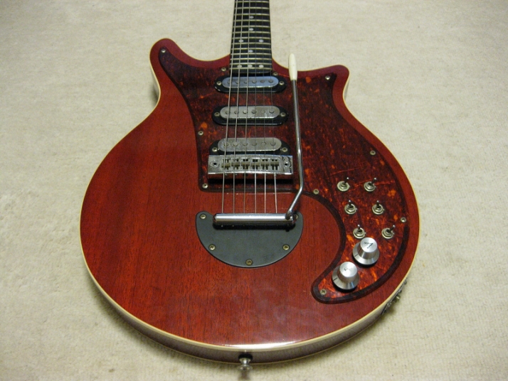 | Greco BM-900 1977 Fujigen made Red Special Guitar Probably 1977 made Greco (Fujigen era) BM-900. It is getting hard to find out the good condition BM-900 even in Japan. Most of MB-900 were modified by the users. This BM-900, the tuner was changed to Grover, and others are kept as original condition. Greco started the manufacturing of Red Special around 1976. This should be first mass production of Red Special. The construction are not completely same. The biggest difference is body. This BM-900 is solid body instead of original hollow body. Also the Mini-Switches are lever type instead of slide switches. The construction of Tremolo unit is closed to Fender mustang. However, the sales of this series are very good because of Brian May name. After BM-900, Greco continued to make BM-80 and BM-90, these are almost same specifications. Japanese Greco crazy is looking for 70's made BM-900. They said that the quality of wood material is better than later series. Well, this BM-900 is very collectable even in Japan. We have checked electric circuit and it is fine. We rated this guitar as "MINT". The scratches and dents are not visible. The neck is straight and frets are proper condition. The truss rod is adjustable. The nut width is 43.8mm. The electric circuits are fine too. The body material is Maho. The neck should be Maho. The weight is 4.13Kg The original Greco case is including. Well, Try original (almost) condition Greco Red Special Guitar! Please enjoy JV guitar! |