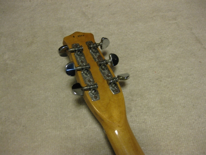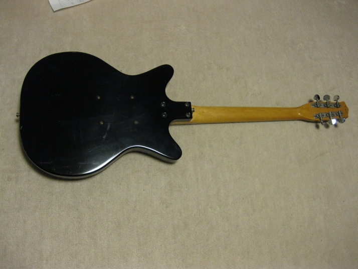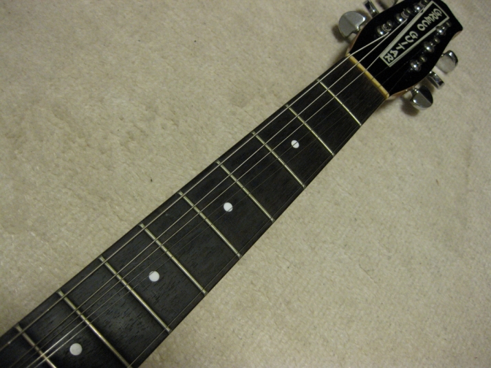 | GRECO DE-700 Danelectro 3021 Model This is late 80's Fujihen made Danelectro 3021 replica. 3021 was called as 2nd class cheap guitar. However, it has been pretty famous by Jimmy Page. It is only reason Greco made this replica. I have checked this guitar very carefully. The body construction is like Semi-Acoustic. Well, this guitar has the center block wood. I don't know the original 3021 has the center block? After I got this guitar, I replaced some parts. The bridge was changed to the brand New Badass type. Well, when I got it was missing. I also out the new volume pod. These are Gotoh made. The output jack has been changed to Switchcraft brand new. The body is not Ply wood. It looks like Maho body (2.9Kg) Neck probably maple? Nut width is 41mm. The body condition is O.K.we can see small dent on the body bottom. Well, the tuners are bit rusted... Well, do not expect a great tone. I like it. The PU balance is not really good too. But, we could hear pretty much like Jimmy Page tone. We will deliver this guitar with Gig bag. Just enjoy to play JV guitar! |