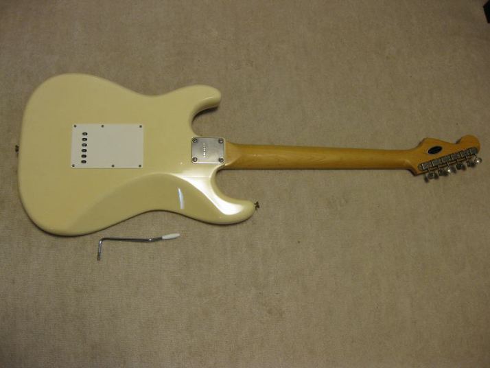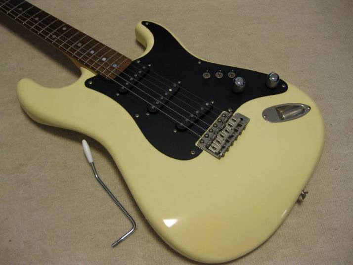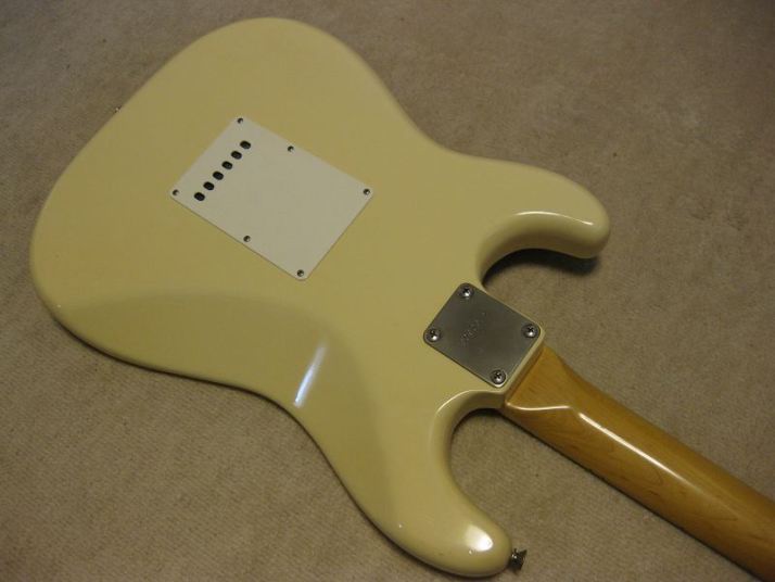 | GRECO SE-600J 1979.11 Fujigen made Jeff Beck Model This is pretty good condition Jeff Beck model SE-600J. The first model was made in 1978-1979. The line up was SE-800, SE-600 and SE-500. SE-800 has the Dimarzio PU on Bridge position. This SE-600J is 1979 made, but November made was already changed to the new specification compare with early SE-600J. The difference are: 1) Pick Ups PU-119 to PU-S8 2) Tuner SD81-05M to MH-S8 3) Tremolo Unit BR-2050 to TP-S6(block and bridge plate are separate type) 4) Bridge saddle Narrow Cast type to Press Steel Wide type This model is more detailed replica model. The body is probably SEN 3P. The neck is Maple 1P + Rose FB. The weight is 3.53Kg and 42.25 nut width. The neck grip is a bit soft V shape (Not really, but could feel it). All original condition without serious dents and scratches. However, this is 32 years old guitar. Please do not except the brand new guitar. Well, pretty good condition guitar. We will ship the guitar with used Gig bag. Enjoy JV guitar! |