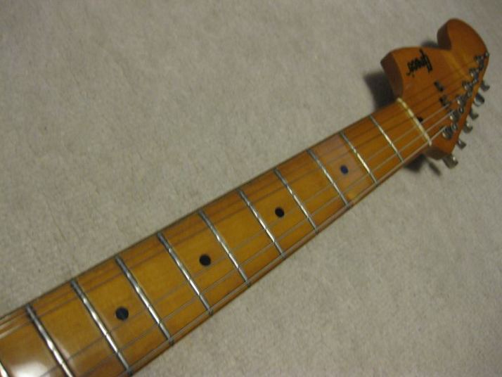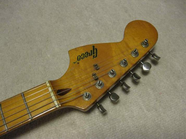 | GRECO SE-500 Lefty 1978 Fujigen made 68 Model This is fair condition SE-500. I rated it because the fret are worn, and a bit levelled by previous owner. The condition of body is not beatiful, just like vitage looks very much. Of course, you could play this guitar well. I did. But it depends on the player.(some people said frets are not good as they think)/ So, I priced lower too. However, the lefty strat in this era is very liited even here. I also did a bit replacement for this guitar. 1) Screws/springs of bridge (all stainless) 2) Out put jack (Brand new Switchcraft) I keep the original rusted parts (will be sent with guitar) The body is probably SEN 3P. The neck is Maple 1P. The weight is 3.65Kg and 42.2 nut width. We will ship the guitar with used Gig bag. Enjoy JV guitar! |