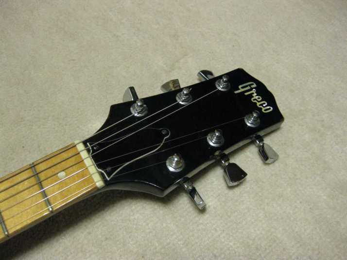 L-6S Custom Type Greco (Fujigen) made Gibson L6S custom replica. We are not sure about the production year of this guitar. It hasn't got the serial numbers. Also, the logo mark design is mid-late 70's type. We could see the similar model by natural finish type. These are made in 1985 with serial number. However, this guitar hasn't got any serial number.Probably, this one made 1979-1984. Greco never introduces this series on their official catalog. The condition is good as aged. There are dents and scratches as over 25 yearfs old guitar. However, other conditions are good enough. It must be all original condition. The body material should be maple from the weight. It is 4.02Kg The neck is should be Maple with bonded Maple finger board. The nut width is 42.3mm The frets are proper condition. Of course, the neck is straight. The electric circuit is original (6 ways Rotary SW is interesting) and fine too . We will ship this guitar with used Gigbag. Enjoy, JV Gibson replica. |
