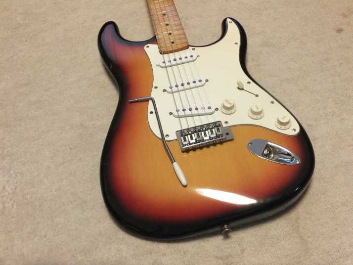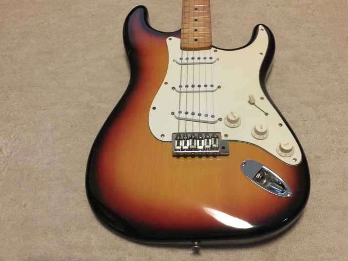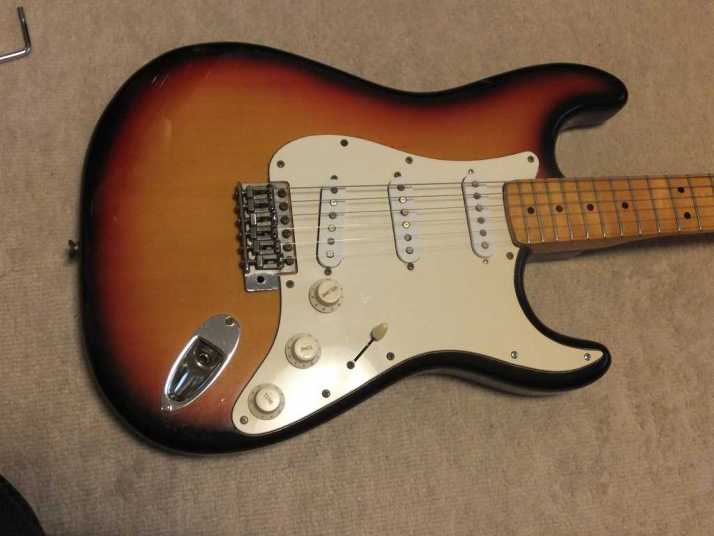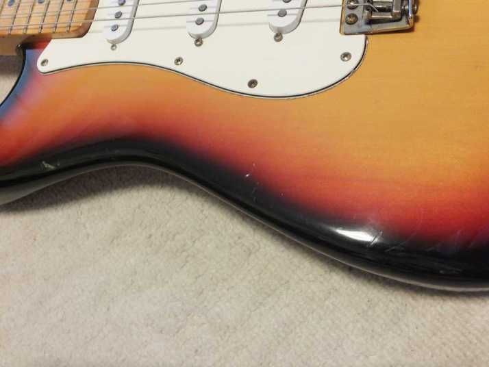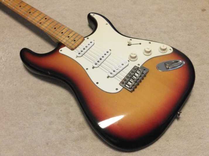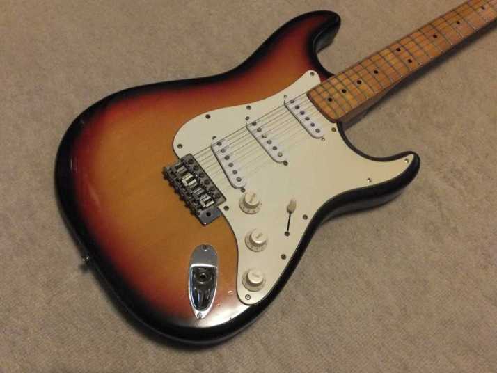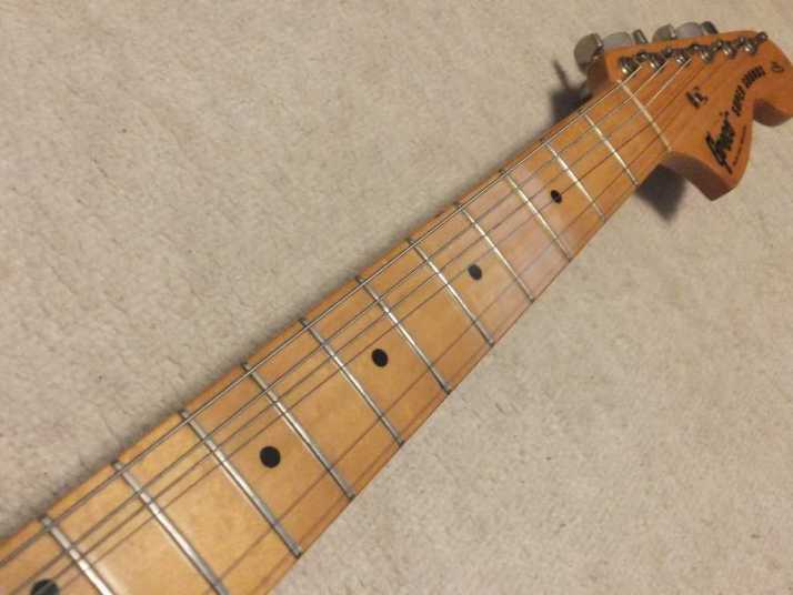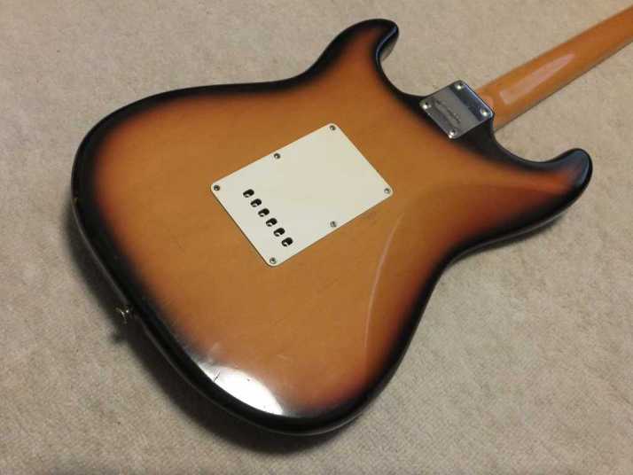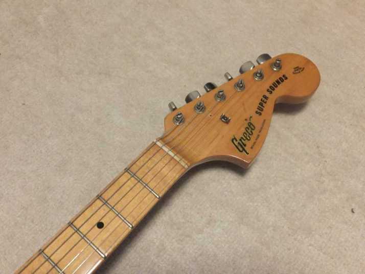 | GRECO SE-500 1978 Fujigen Made Strat 68 model This is good condition SE-500. There are not so many dents and scratches. I'm not sure but Greco 68/72 large head type became a bit heavy compare with 54/57 and 62 model. Maybe, they found out the Fender USA guitars that time became a heavy weight specially large head. So, they follow it? The weight is 4.29 kg, probably SEN body. I could see the dent at body bottom with paint peel off. It is like 5-6mm diameter. The neck is 1P with approx. 42 mm nut width and standard C shaped. Truss rod is working. Frets are O.K. Also, the previous owner took off the 3rd and 4th string guide. (many people did like it, I did too when I was young). It is good condition as this aged guitar. Hope, you will enjoy late 70's made Fujigen Strat! |