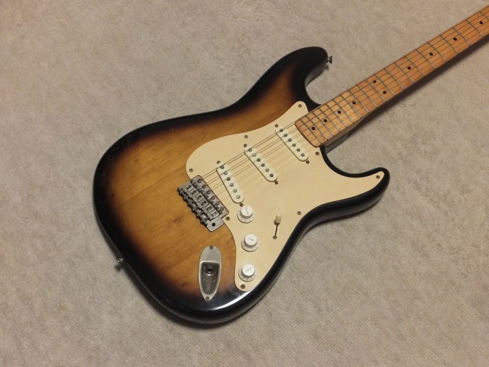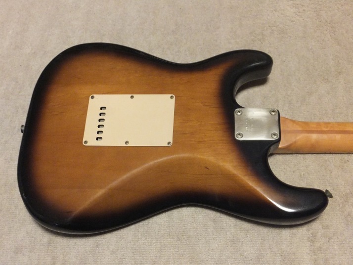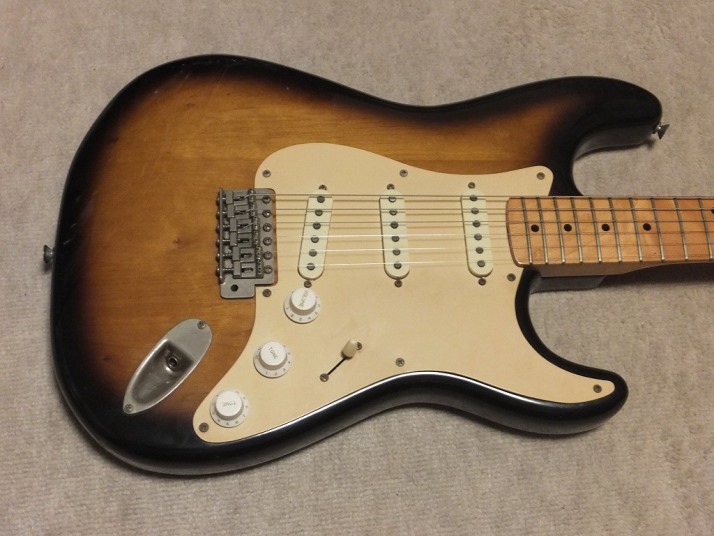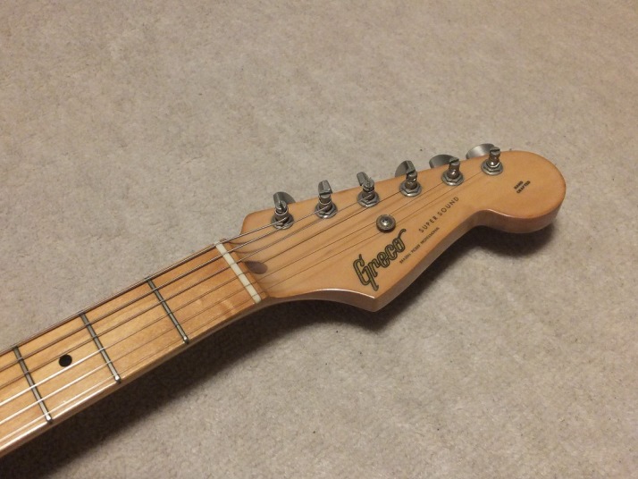 | Greco SE-800SB/M 1977 Fujigen made This is SE-800 1977 made Small head model. This early model specification is unstable. But according to Greco officials, this is not Nitro finish yet. PU's are "Excel" type. The PU cavity has brass plate shielding. So, it must be early made SE-800, we could specify. There are several story some of SE-800 has Greco marked type were on. Some of SE-800 had Schaller tuner. This one has Rotomatic Type greco marked tuner type. I have asked my friend he used to be Fujigen. He said sometimes the specifications were mixed. The neck has bit like C shape. Of course, Maple 1P. The body is probably SEN wood still. . The neck is fine. Truss Rod is O.K. Good feel to playing. All electric circuits are original. I have just checked it. Both body and neck conditions are very good. We could see a few dents on the body. Well, these are very small and not really visible. Only the head, the paint became a bit milky. Metal parts were not really rusted. I would say really good condition. Well, it should be good to purchase early made Greco top model |