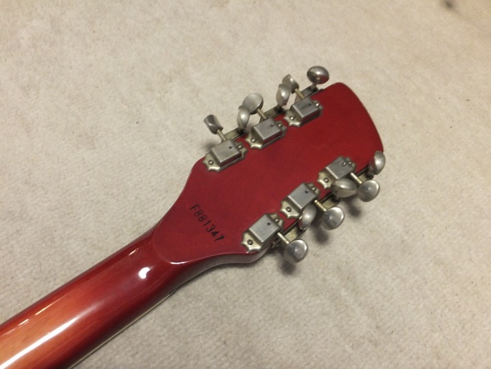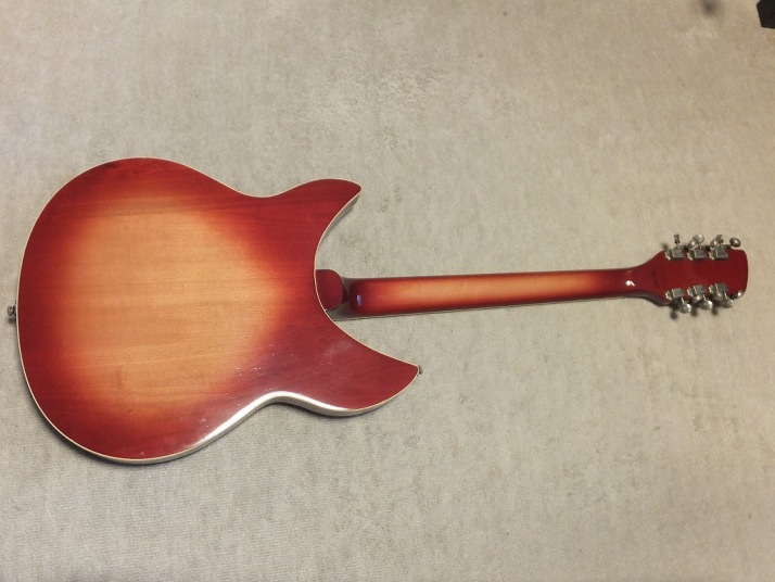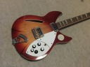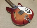 | GRECO RG-95@(900 was a bit earlier model) Rickenbacker 360/12 model I love Greco made Rick model. I owned many of them and sold some of my collection. This guitar is 360/12 with pretty good condition. So, Id not have a strong intention to sell this guitar. If I could get an extra, I will consider offering. I told you guys before that I don't know the original Rickenbacker sound. I never bought it. I only listen it on CD. I just felt it should be light tone. more thin, clear tone. If so, this Greco tone is very sweet on Neck/Mid Pu. Should I say warm ? This 12 strings tone is offering the very clean tone. The condition of this guitar is good. there are not so many scratches and dents. Only stikcer on the horn part. I didn't peel it off. Well, the frets and metal hardware are good condition. You could play this guitar, even for the collection, could be fine. The body weight is 3.2Kg. The catalog said the body and neck are Maple made. The nut width is 43.2mm. This guitar has the hard case. Please try the Japanese Vintage Guitar !!! |