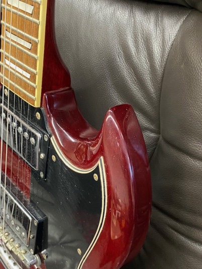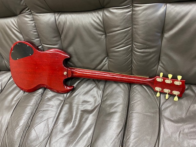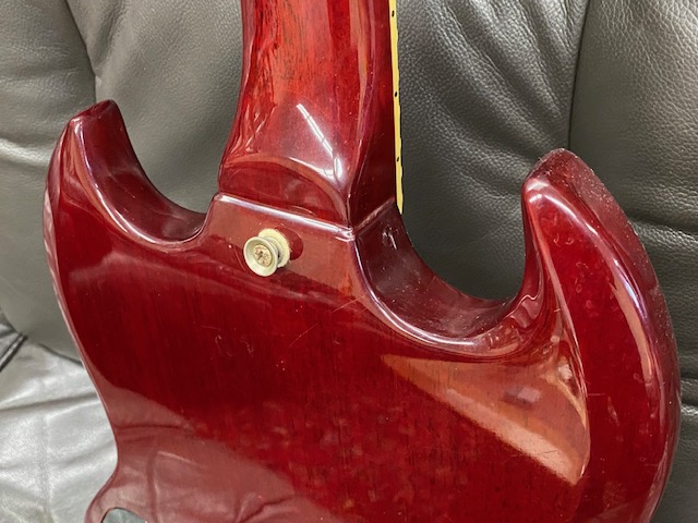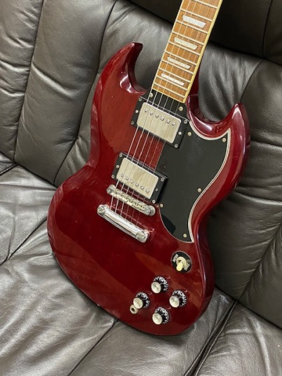 | Greco SS SG model I have seen many Japanese made guitars. Well, everybody said Japanese Vintage guitars now. I felt now it made many misunderstanding for the users. I would not tell all JV guitars are fine. Some of them are really fine, better than original Gibson or Fender, but no all guitars are better. Greco brand were made by Matsumoku in 70's. After Matsumoku, Greco has changed it to Fujigen. Which made is better? This is nonsense question. Both companies are made due to Greco requirements. They were making Aria, Ibanez and other brands too. At early 70's time, they just made guitars to concentrate outlook copy. The dimensions, hardware, electric pot... they cared, but not cared seriously. I had Greco SG-600 before. It has set-in neck construction type. However, body is not real mahogany, the neck is maple 3P, humbucking PU wasn't pot in Paraffin. So, sound is not like SG guitar. It was better looks than SG-300 or other bolt on neck type SG. Into 80's, they seriously follow the original Gibson. They started real mahogany neck and body, not pancake body. Of course, the pickups were improved like Gibson construction. Other hardware was improved a lot. Even Frets, screws are improved. Because, they made enough profit to invest to follow the original quality. On the other hand, Gibson and Fender became the very poor quality. They concentrate how to make a profit too! This SG guitar was made 80+, it was actually good time for Fujigen to make the good replica. They use real mahogany and better guitar parts. A guitar can be good or bad depending on how you look at it. When judging only by appearance and age. This is mainly for appreciation, or something that satisfies the desire to possess like antiques. However, when viewed as a playing instrument, it is not suitable for guitars made of solid materials and parts. Many users would argue otherwise, but if you think about it, if you wanted to make a guitar at a cheap price, you had no choice but to use cheap materials. Also, since it is a rarity model, if it is a model with a small number of production and in good condition, the value will increase. However, it is also true that the guitars we see these days are often in very poor condition are of low rarities, do not receive any maintenance, and are sold with high price tags. Should Back this guitar, this is proper condition. The neck is fine and frets are fine. I have checked the electric circuits are fine too. Good JV guitar, if you like to get it! |