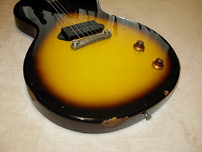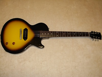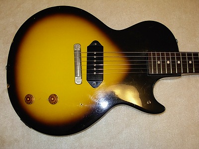 | GRECO Les Paul Jr. I'm not sure the product year of this Les Paul Jr. . Probably, it was made after 1985. Greco said "Mint Collection" series. It is a bit later prodution of famous "Super Real". The logo mark is "Greco" -- O cut logo. On the photo, you could not see the logo mark well. I would put the logo later on.(The bottom photo) The condition of this guitar is so-so. The neck, frets and electric circuit are all fine. But it has two paint off dents on side. Also have a paint (wood crack) around the volume knob. The pcik gurad are missing too. The sound is vry good. I have owned Orville by Gibson before. Both of them are made by Fujigen. So, neck feel (it is not really fat) and tone is almost same. This guitar hasn't got the case. If you need the hard case, please click above Icon. You could see new Les Paul Case. If you would not take the hard case, we would put this guitar into the soft Carrying case (used) and pack into the export carton box. Fujigen made Greco Les Paul, over 20 years old. Please try the Japanese Vintage Guitar !!! |